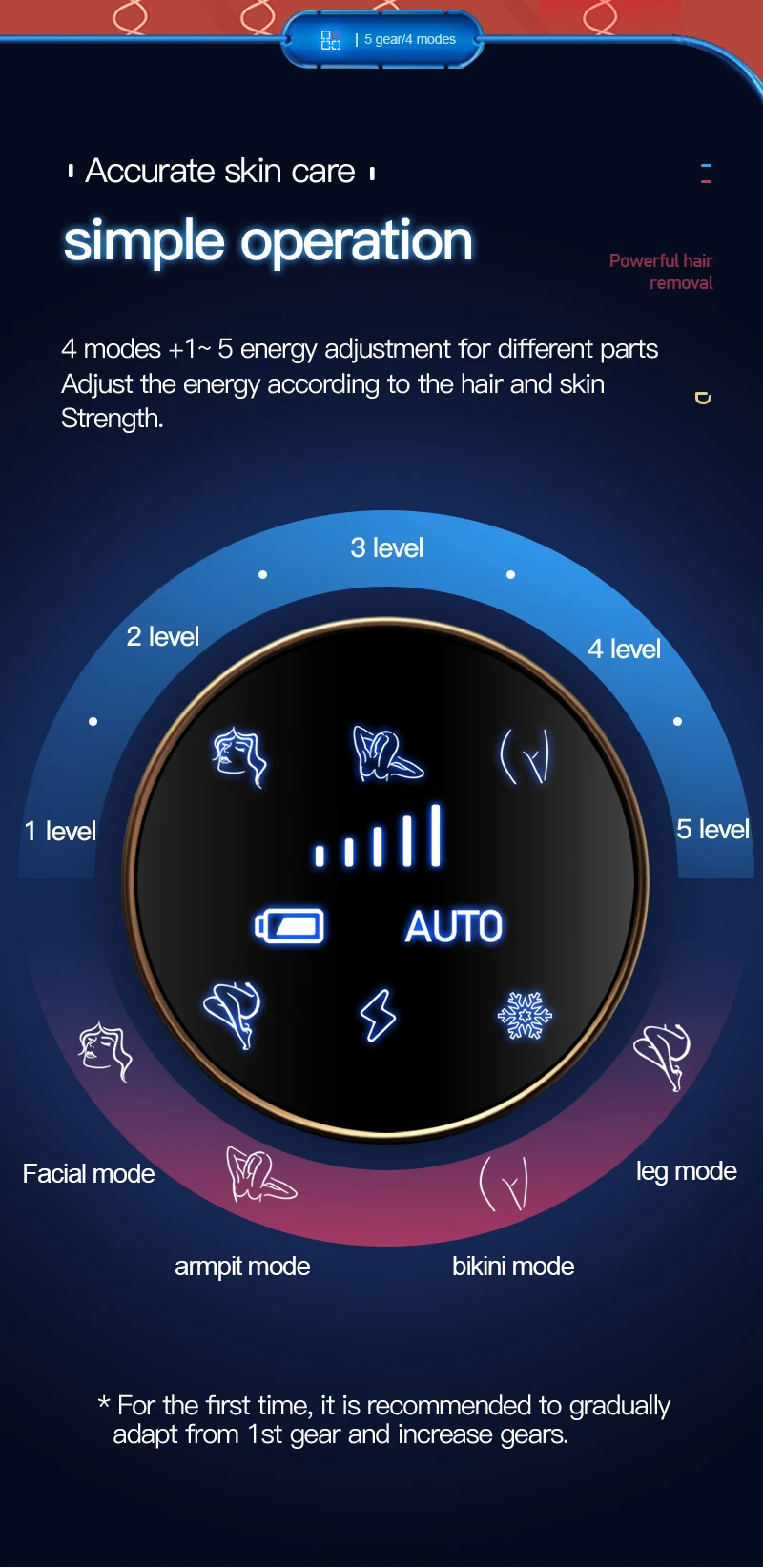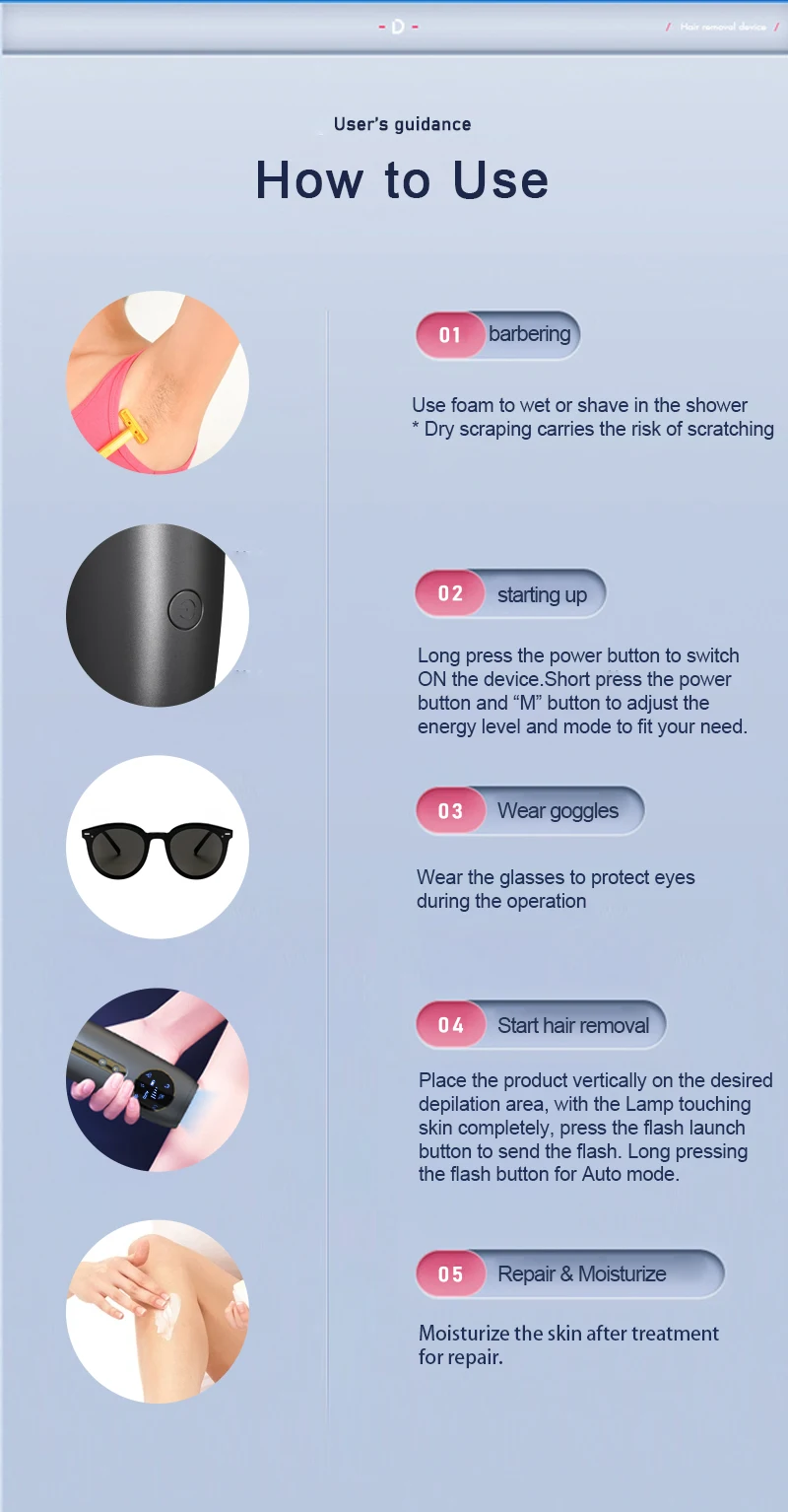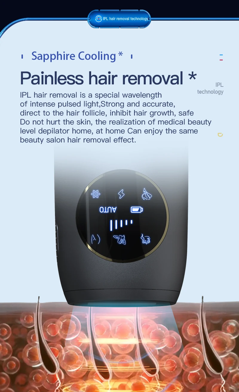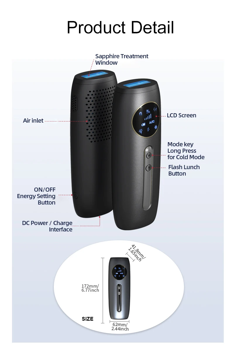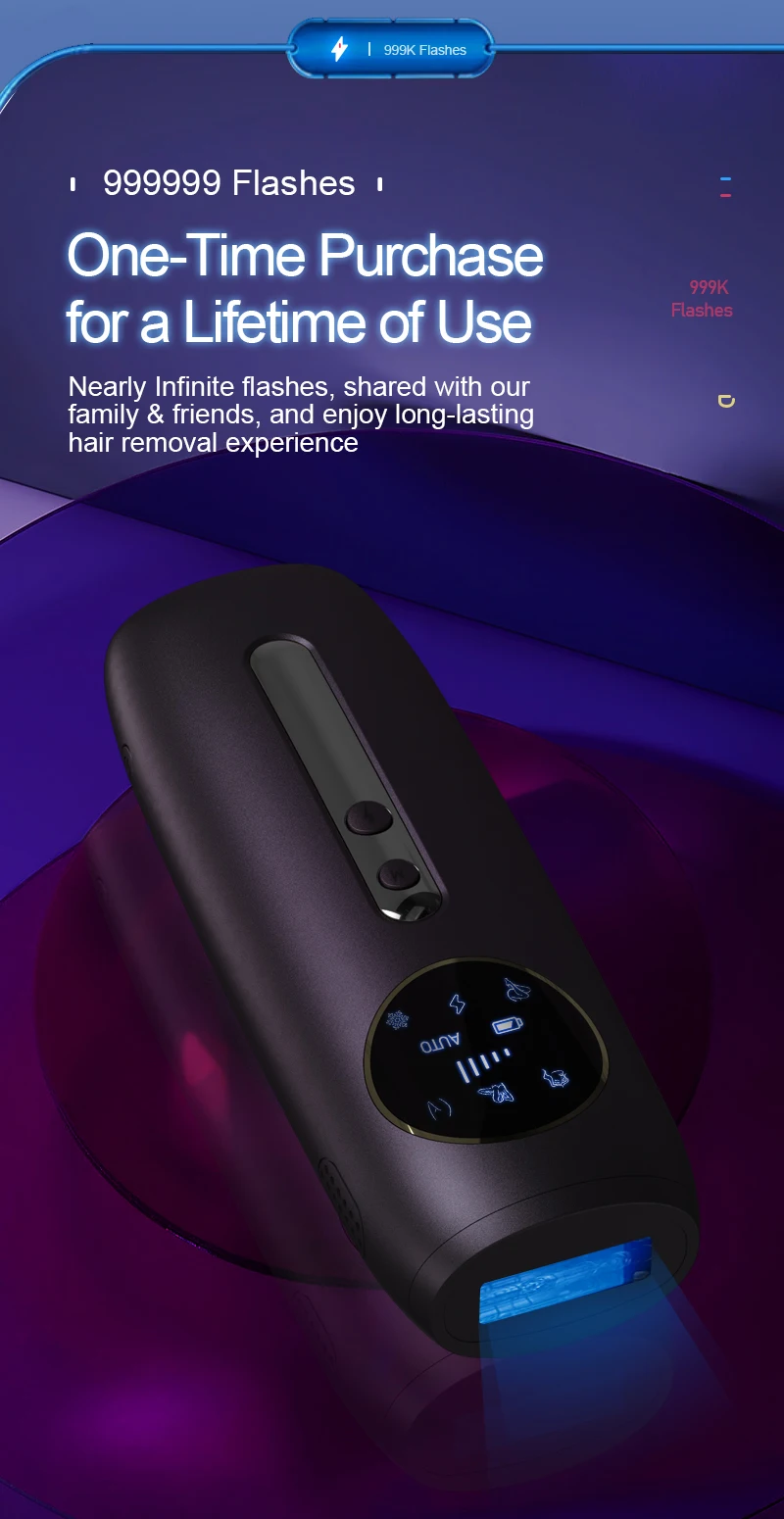 5. Five Energy Levels: Customize your treatment intensity with five adjustable energy levels to suit different skin types and hair removal needs.