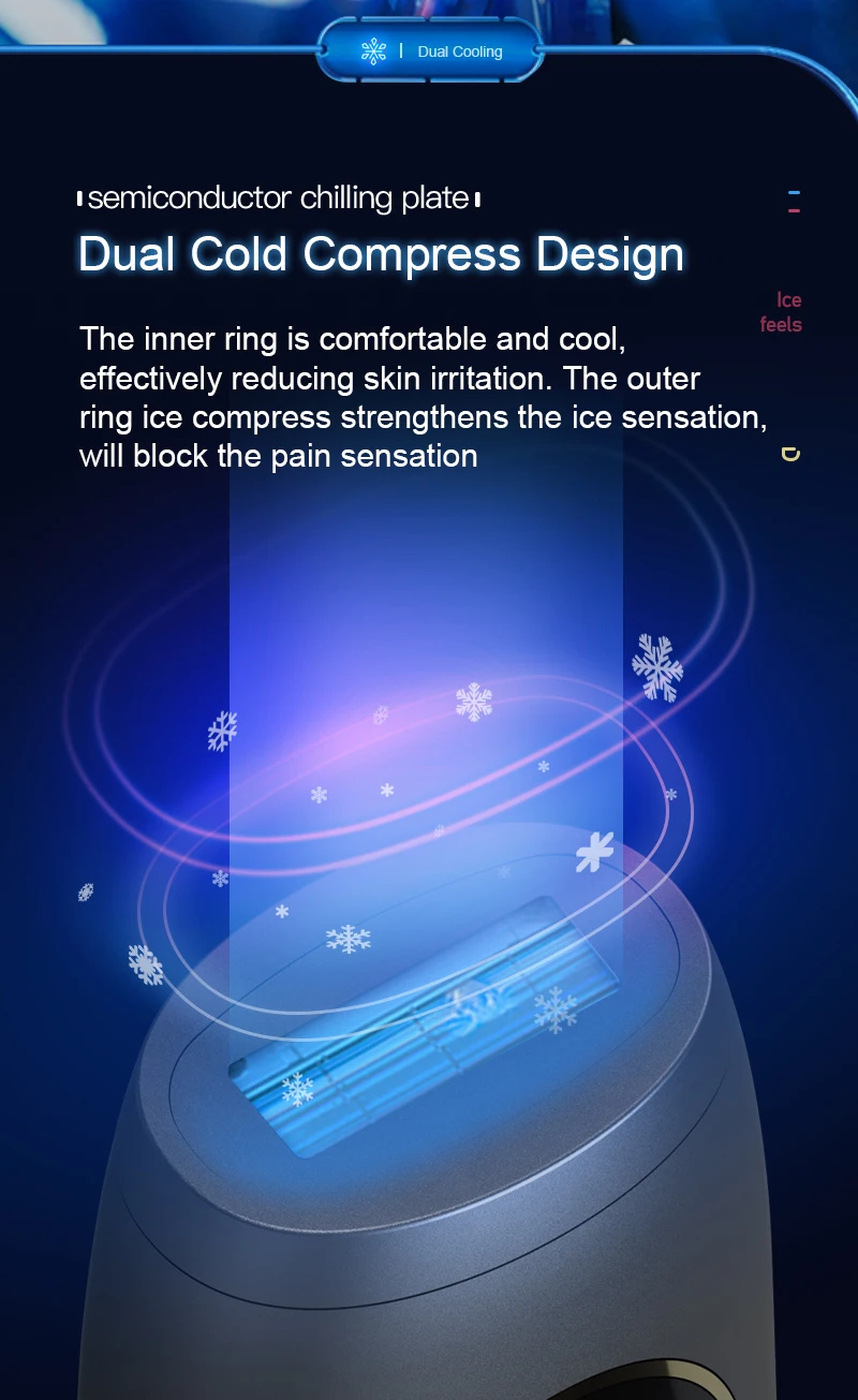 Saphire Crystal Lens used not only enchances the treatment efficary but also cool the skin during the procedure, reducing heat sensation and minimizing discomfort, making the device perfect for sensitive areas