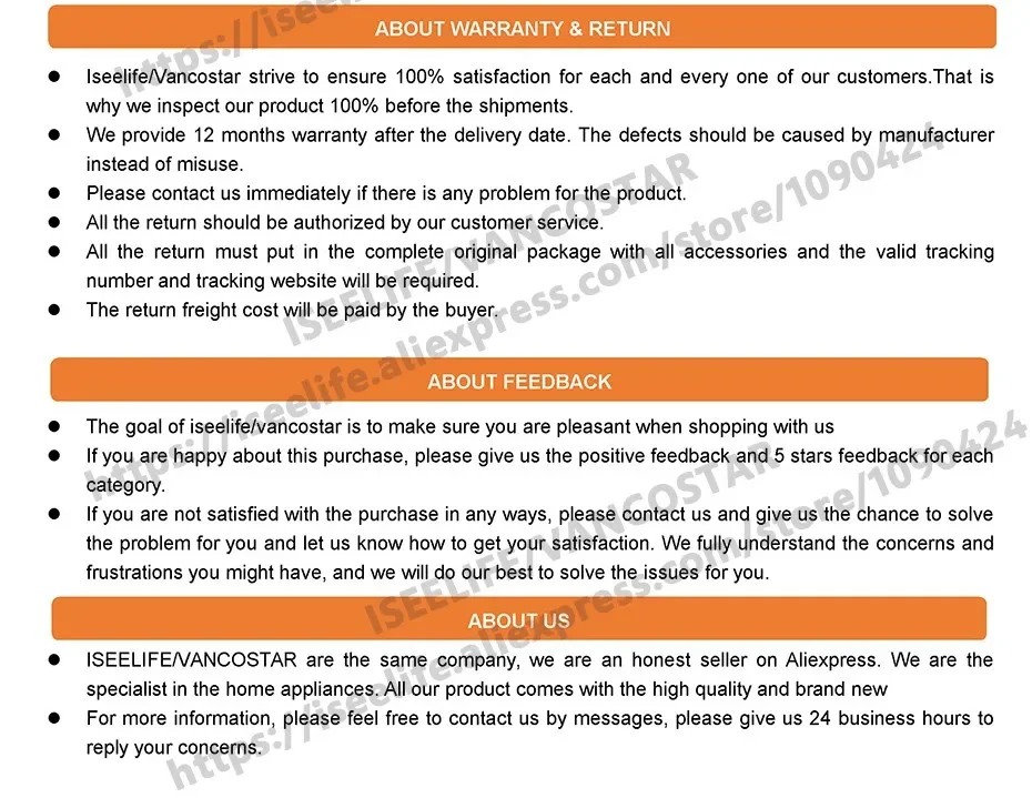 3. VATCustoms Duty are not included in the price sent from China, otherwise state. If those charge are needed. Buyer need to asist for the customs clearance and pay the customs duty /VAT/ the related charge to the customs office. All online-stores on Aliexpress are same.