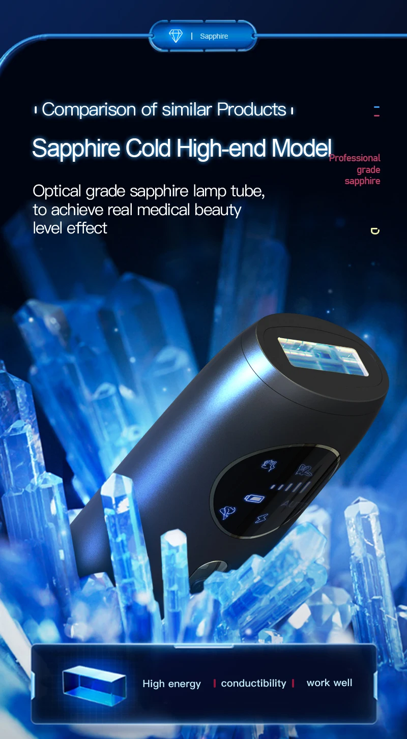 Rechargeable Laser Hair Removal Sapphire Cooling Auto Permanent Painless Bikinis