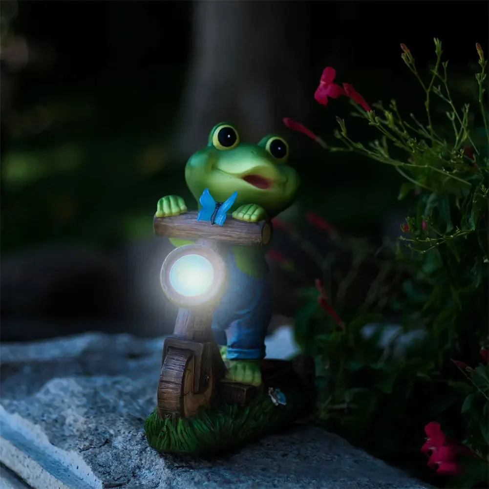 Resin Garden Frog Statue with Solar Light Frog Cycling Model Cute Animal Statue for Patio Lawn Yard Decoration