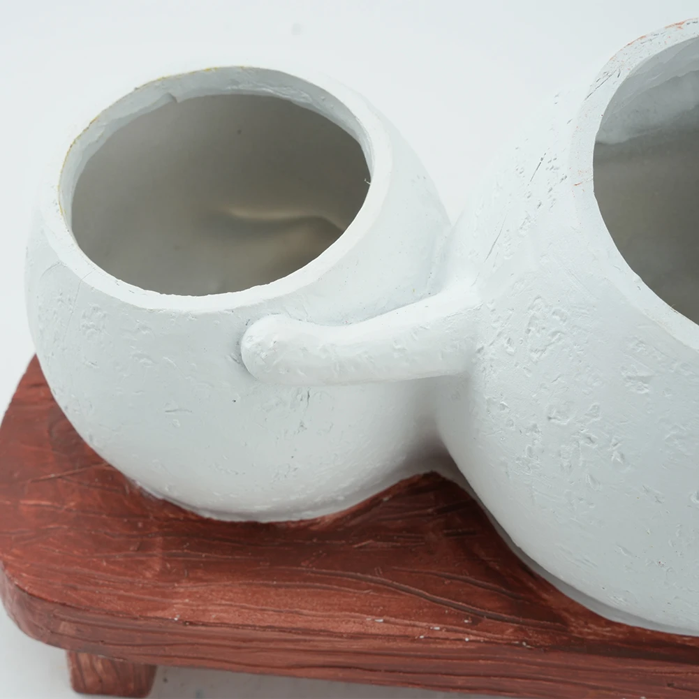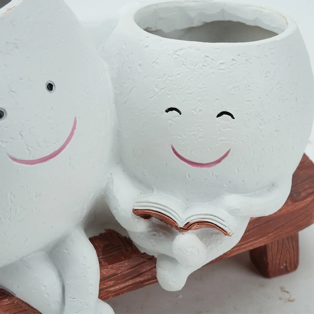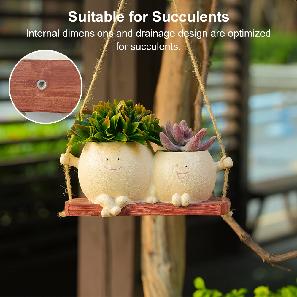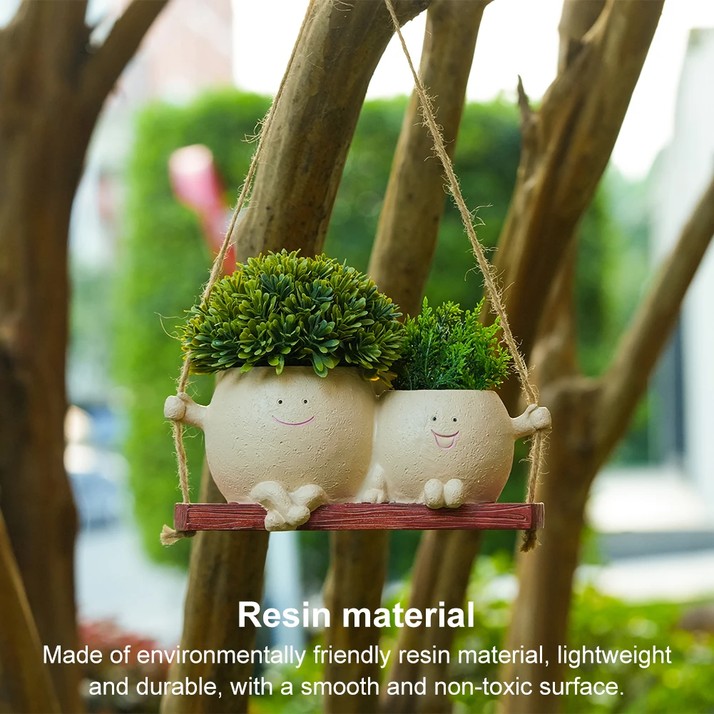 Resin Swing Smile Face Planter Cute Double Head Plant Succulent Pots with Draina