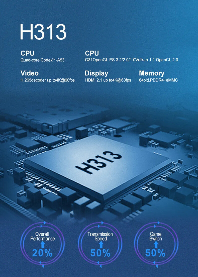 | CPU | H313 Quad-core ARM Cortex-A53 |