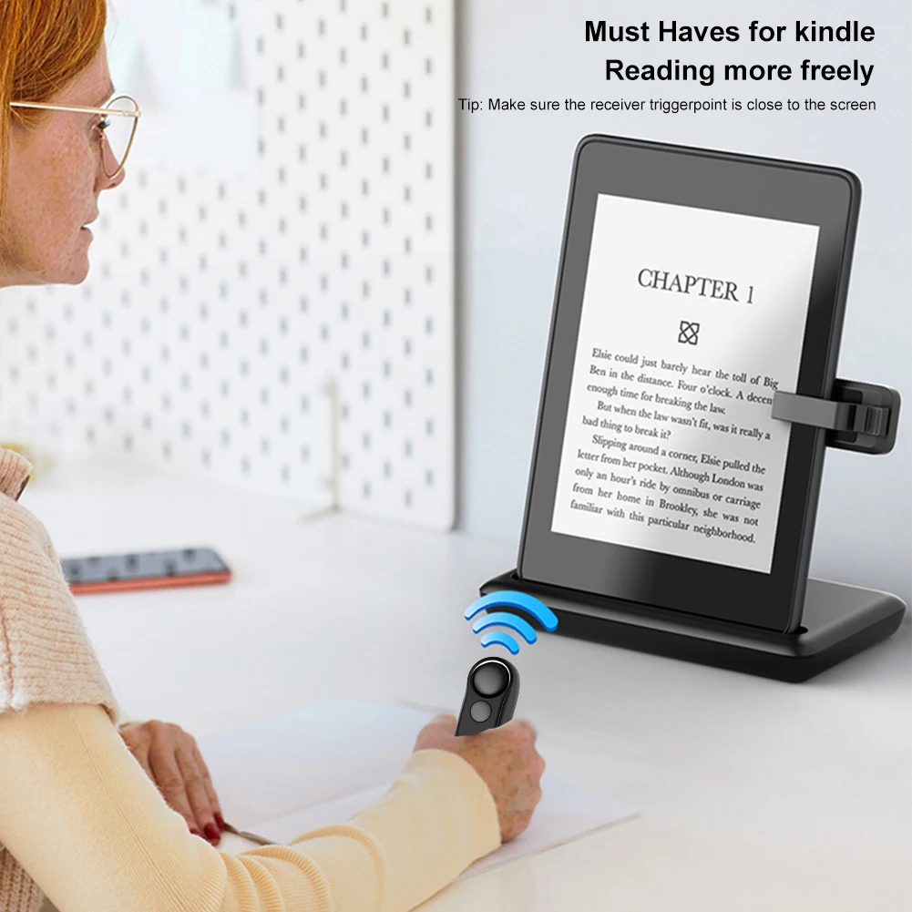 1.Convenient Hands-Free Control: Utilize the remote control page turner to effortlessly flip pages without interrupting your reading flow. Ideal for multitasking, whether taking notes or simply relaxing under a blanket.
