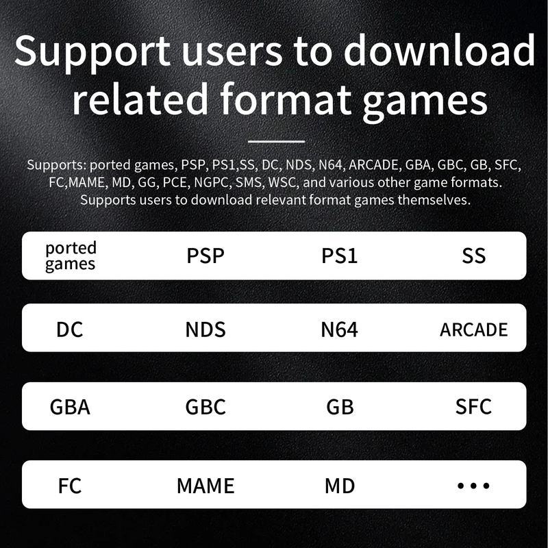 RG CubeXX handheld game console supports more than 10 game formats .Supported ported games, various other game formats. supports users to download related format games.