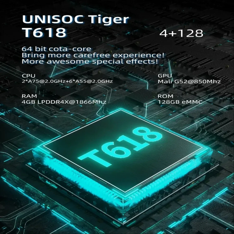 CPU:Unisoc Tiger T618 64-bit cota-core 2*A75@2.0GHz+6*A55@2.0GHz