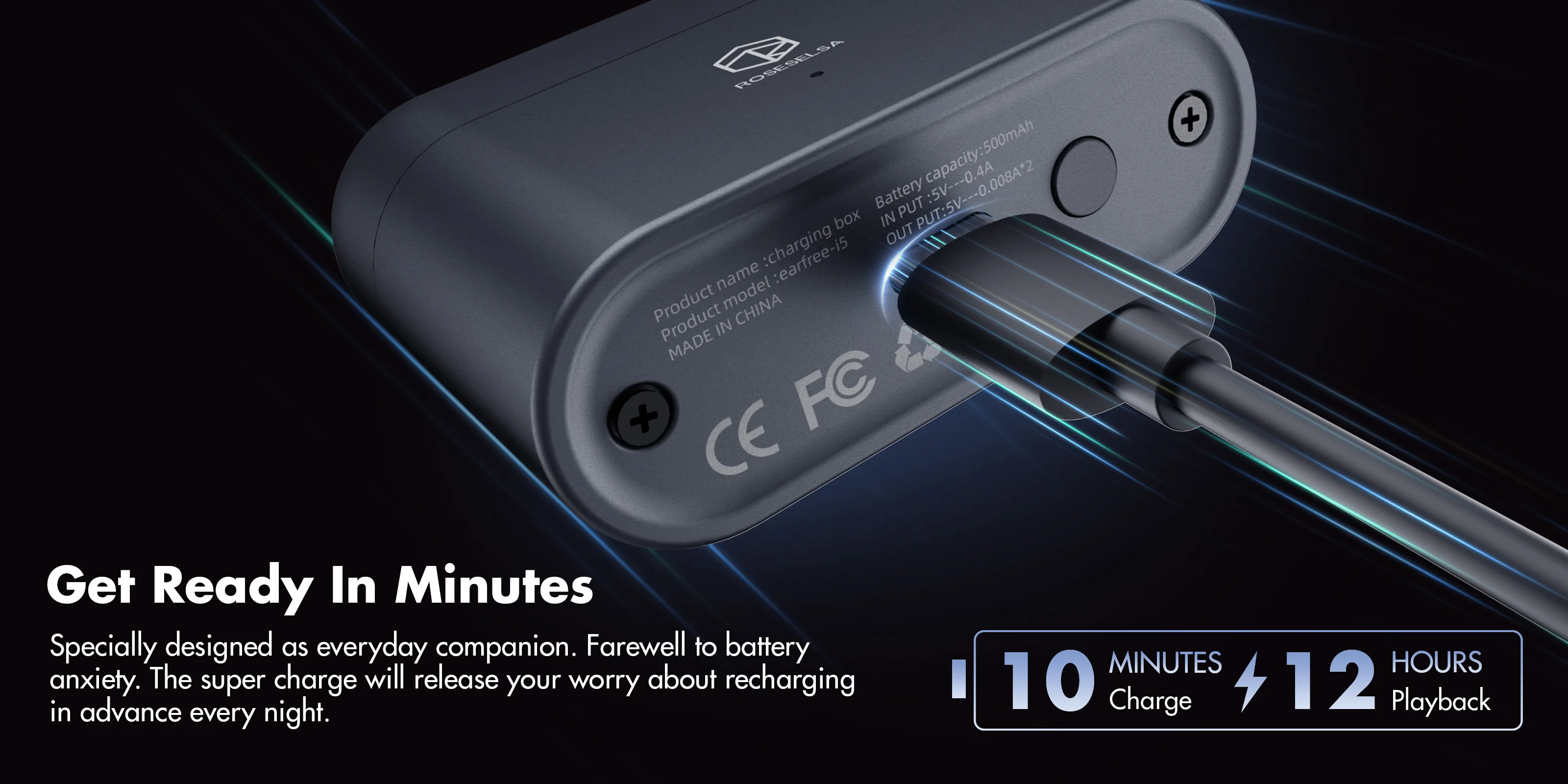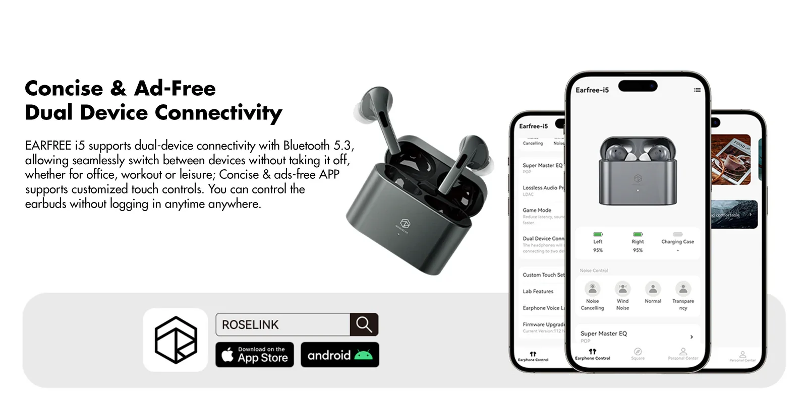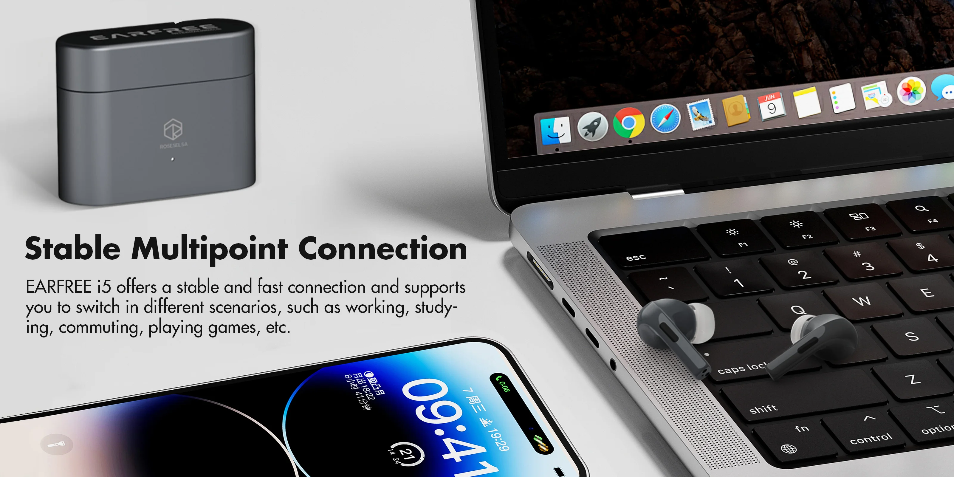 ROSESELSA Earfree I5 Hi-Res Wireless Earphones Noise Reduction 50H Long Playtime