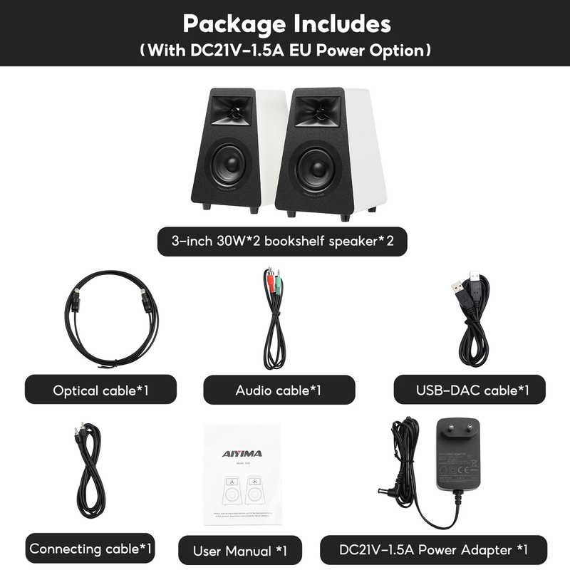 S30 Active Bookshelf Speakers Bluetooth 5.3 Wooden 100W Studio Monitor Speakers