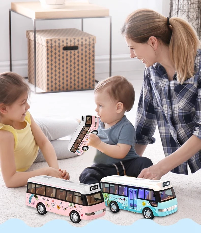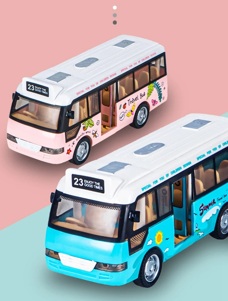 School Bus Toys Cars Die Cast Little Cars City Bus with Sound and Light up Frict