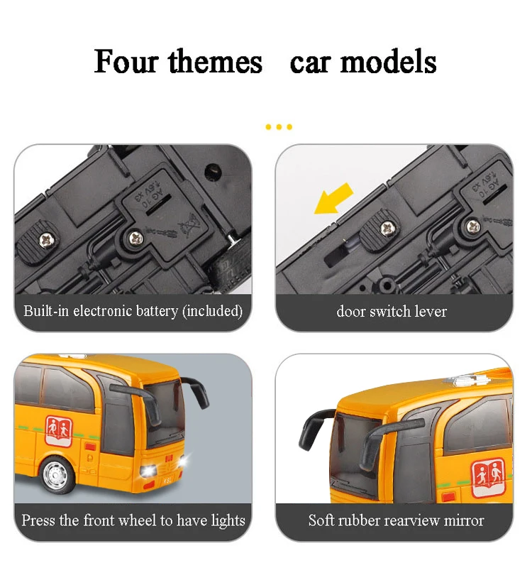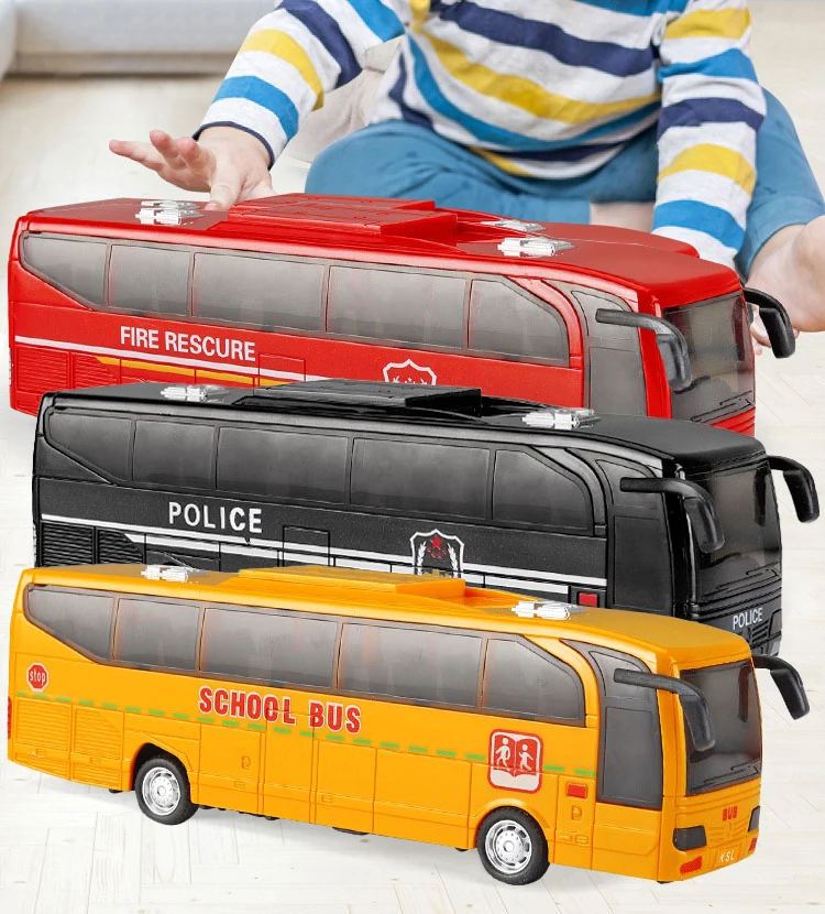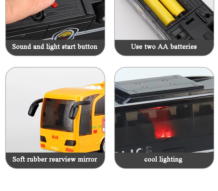 School Bus Toys Cars Plastics Little Cars City Bus with Sound and Light up Frict