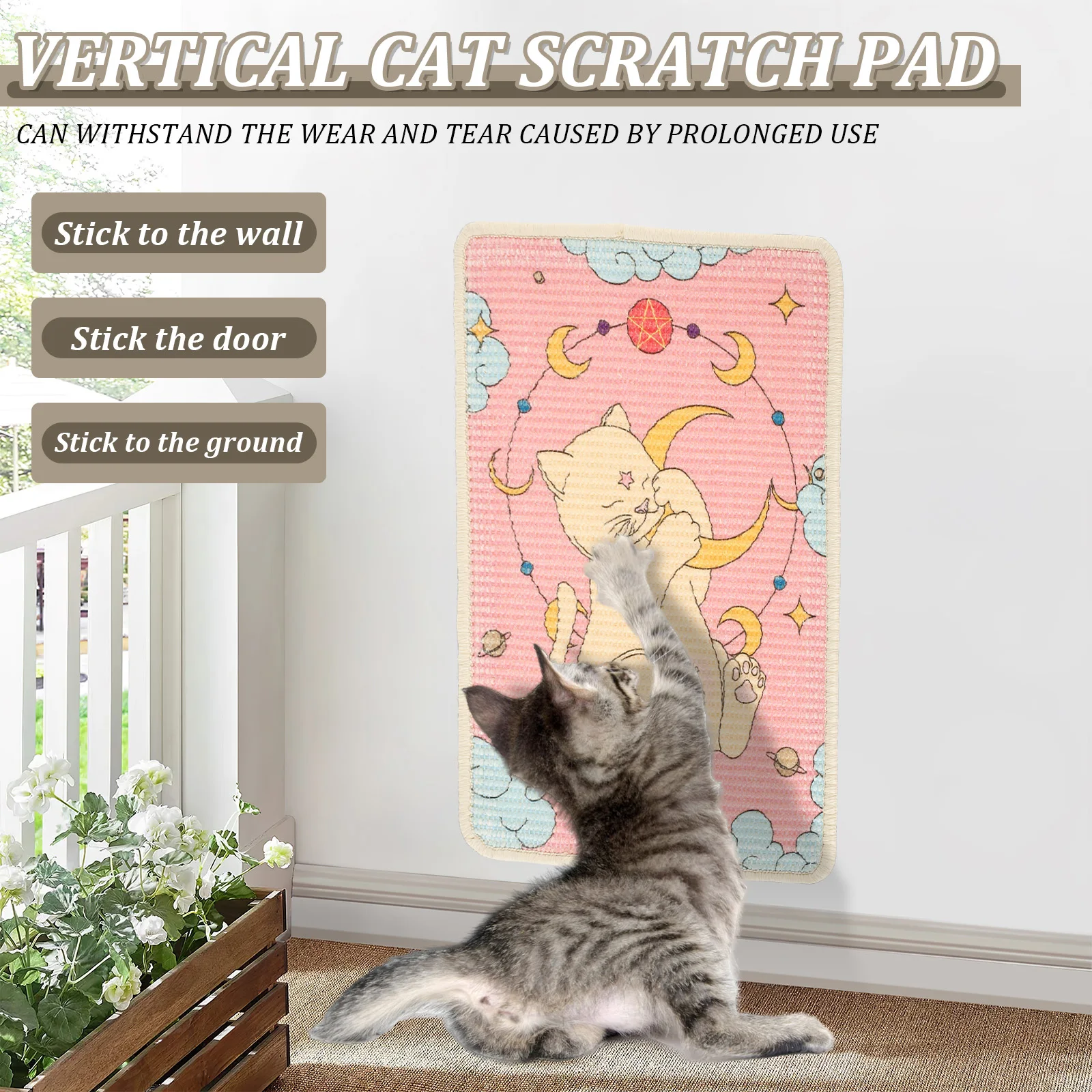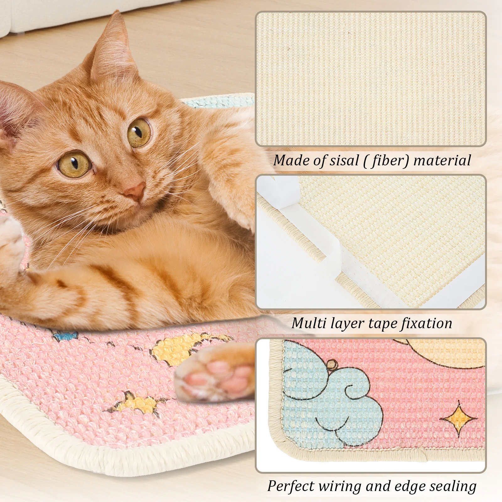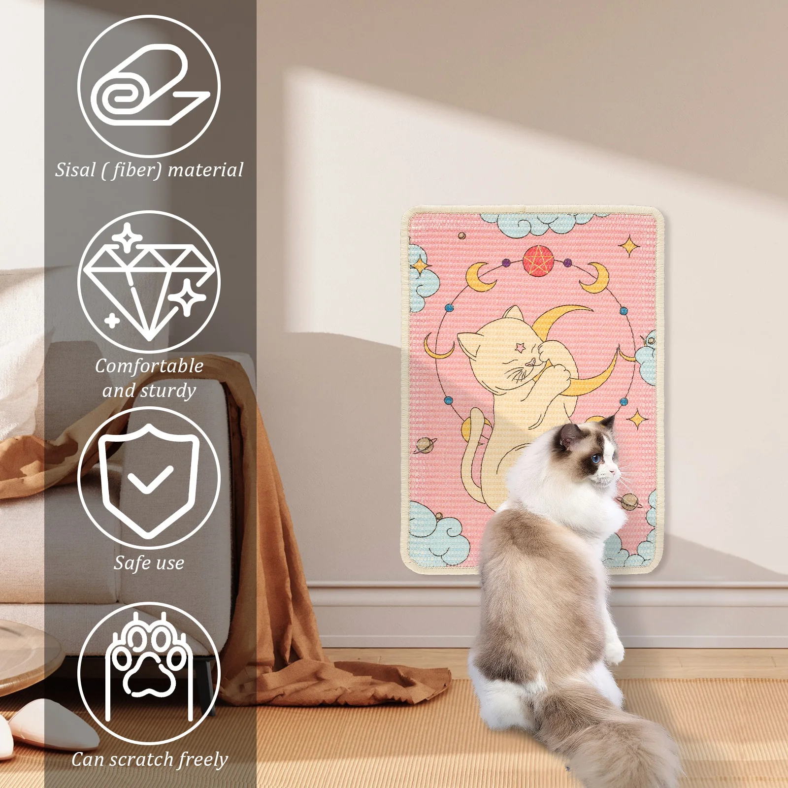 Product Material: Vertical cat scratching mat is made of sisal (fiber) material, and there is a painted with safe printing ink on it, which is safe for your cat and the environment, so you can use it with confidence