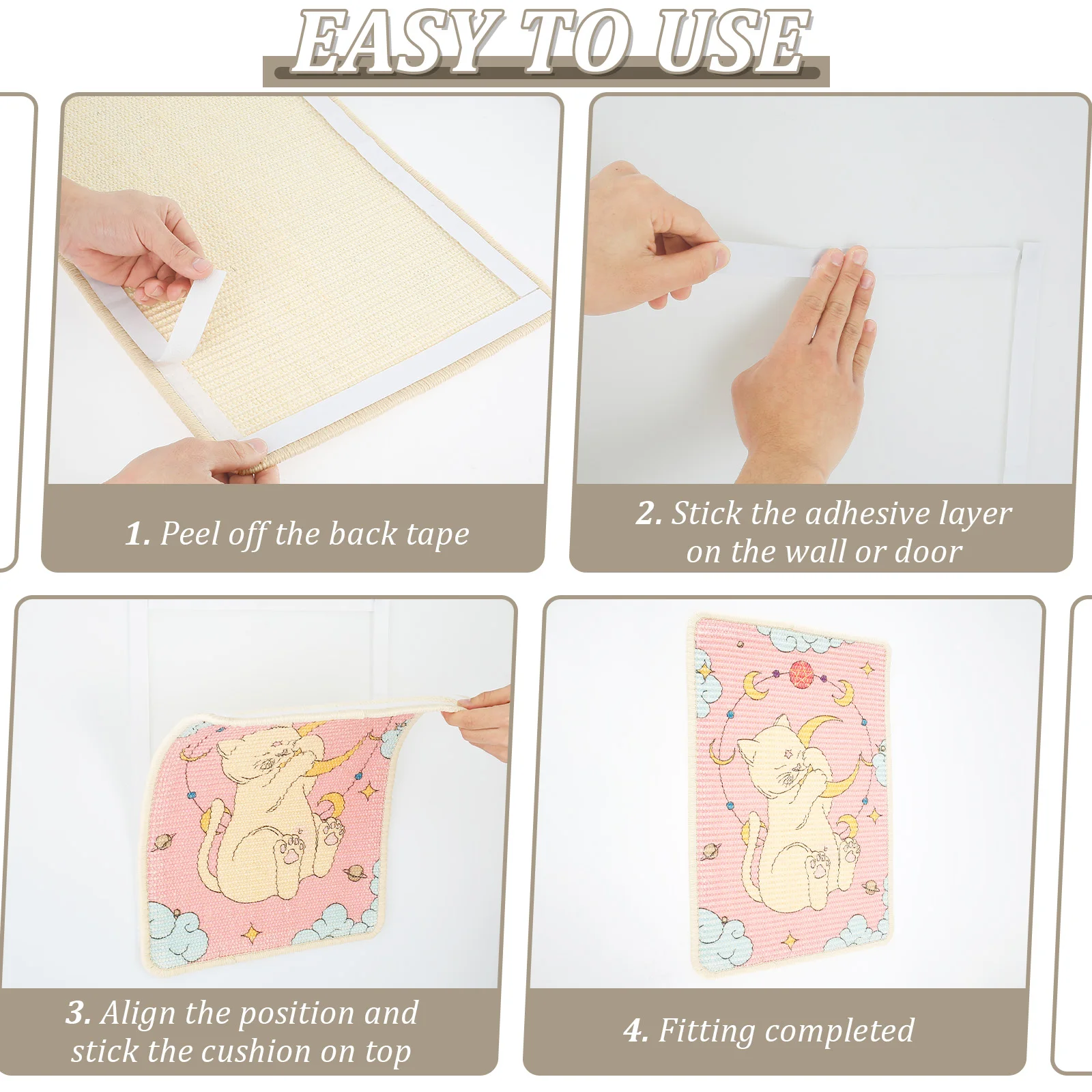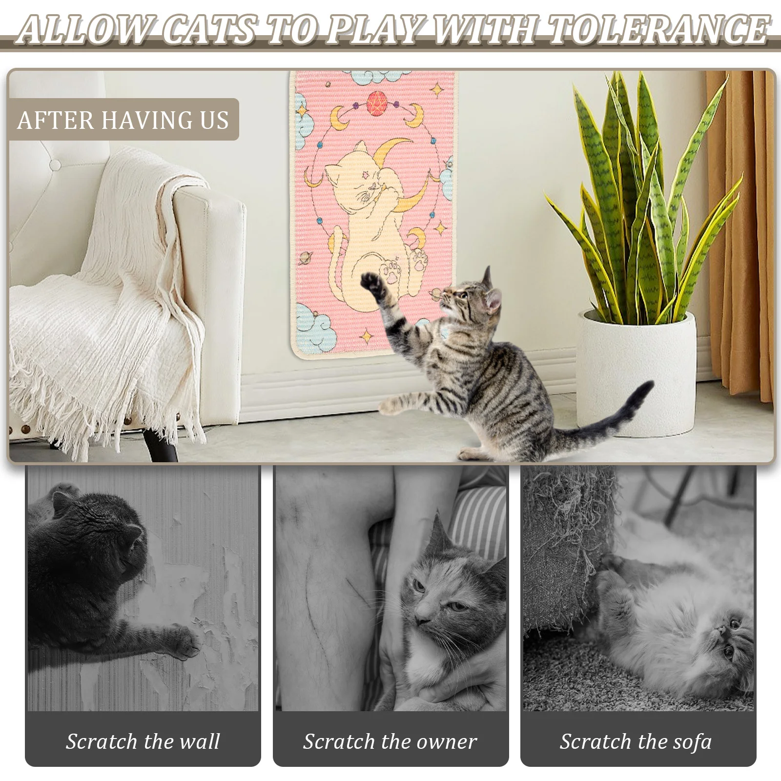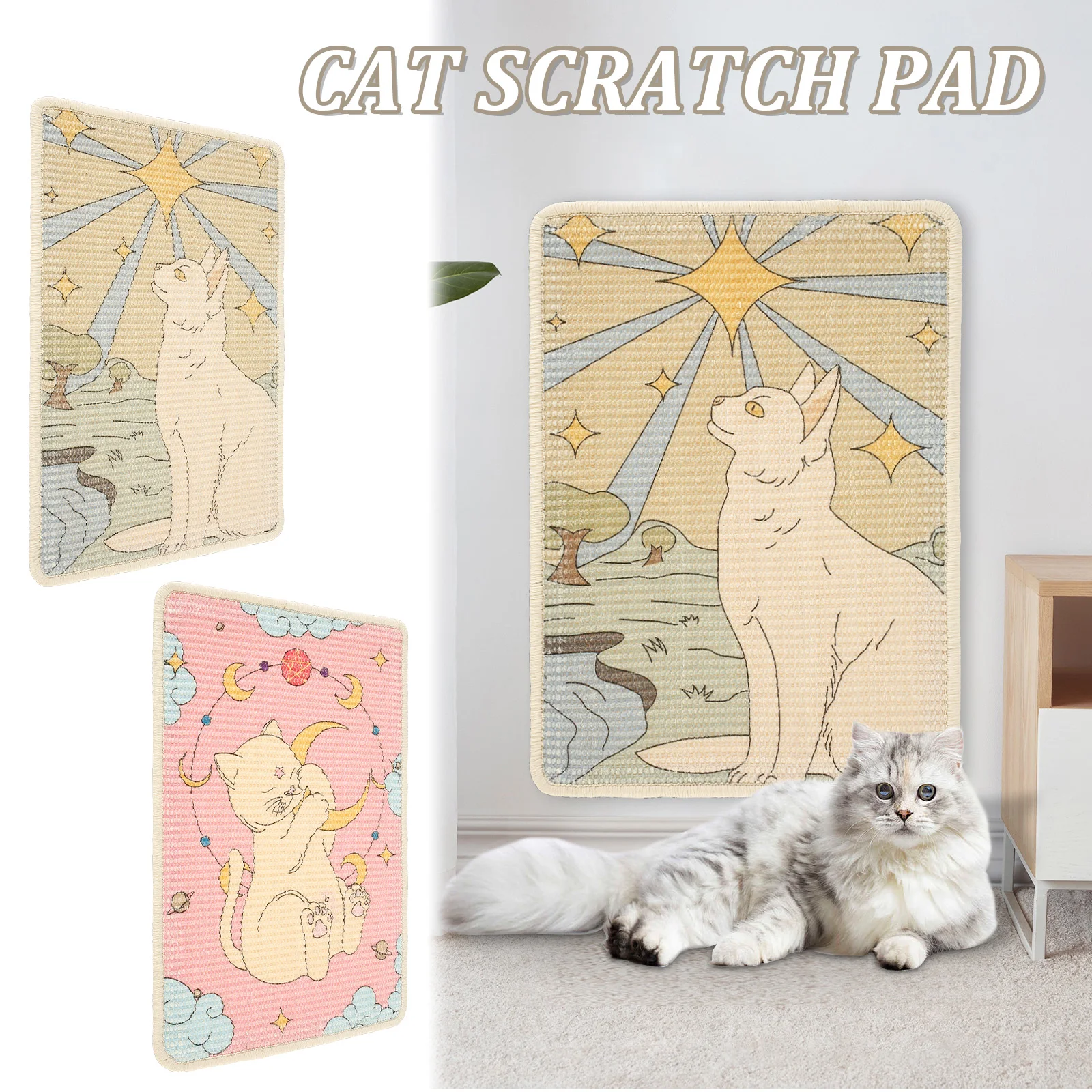 Product Material: Vertical cat scratching mat is made of sisal (fiber) material, and there is a painted with safe printing ink on it, which is safe for your cat and the environment, so you can use it with confidence