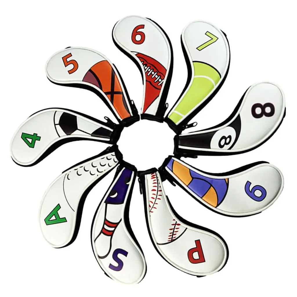 Set of 9 Zipper Golf Club Iron Iron Covers Protective Covers for Head for Golf C