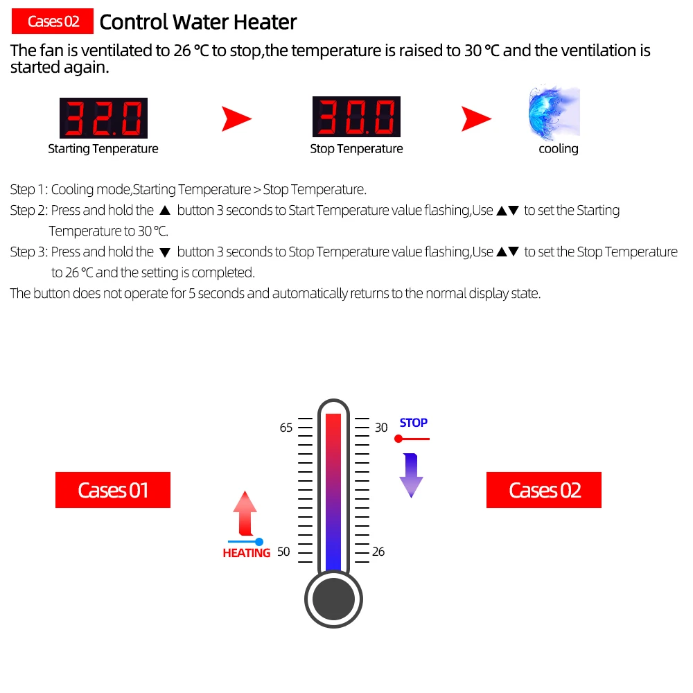 Heating use case: control the water heater, heat to 65 C to stop, the temperature drops back to 50 C and start heating again