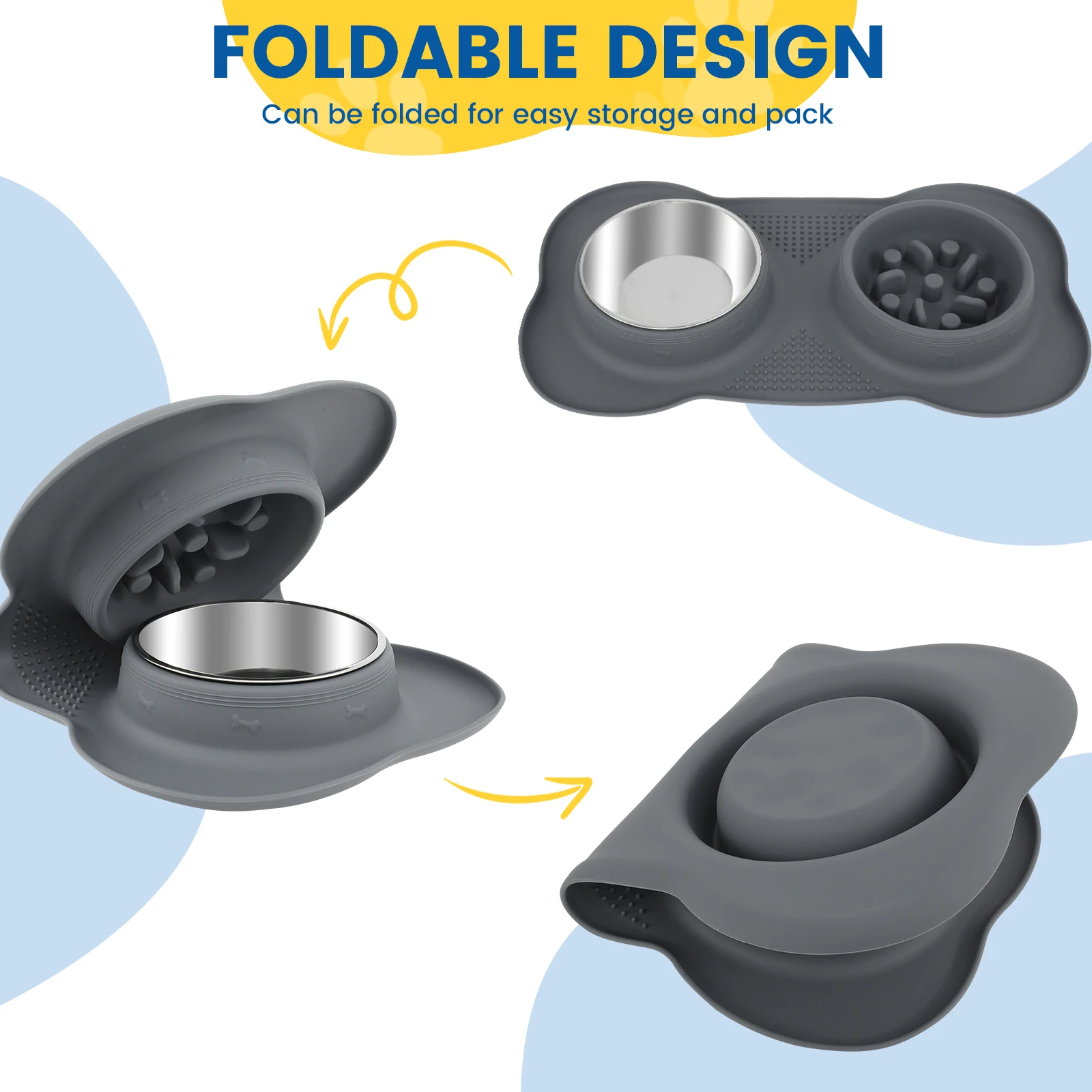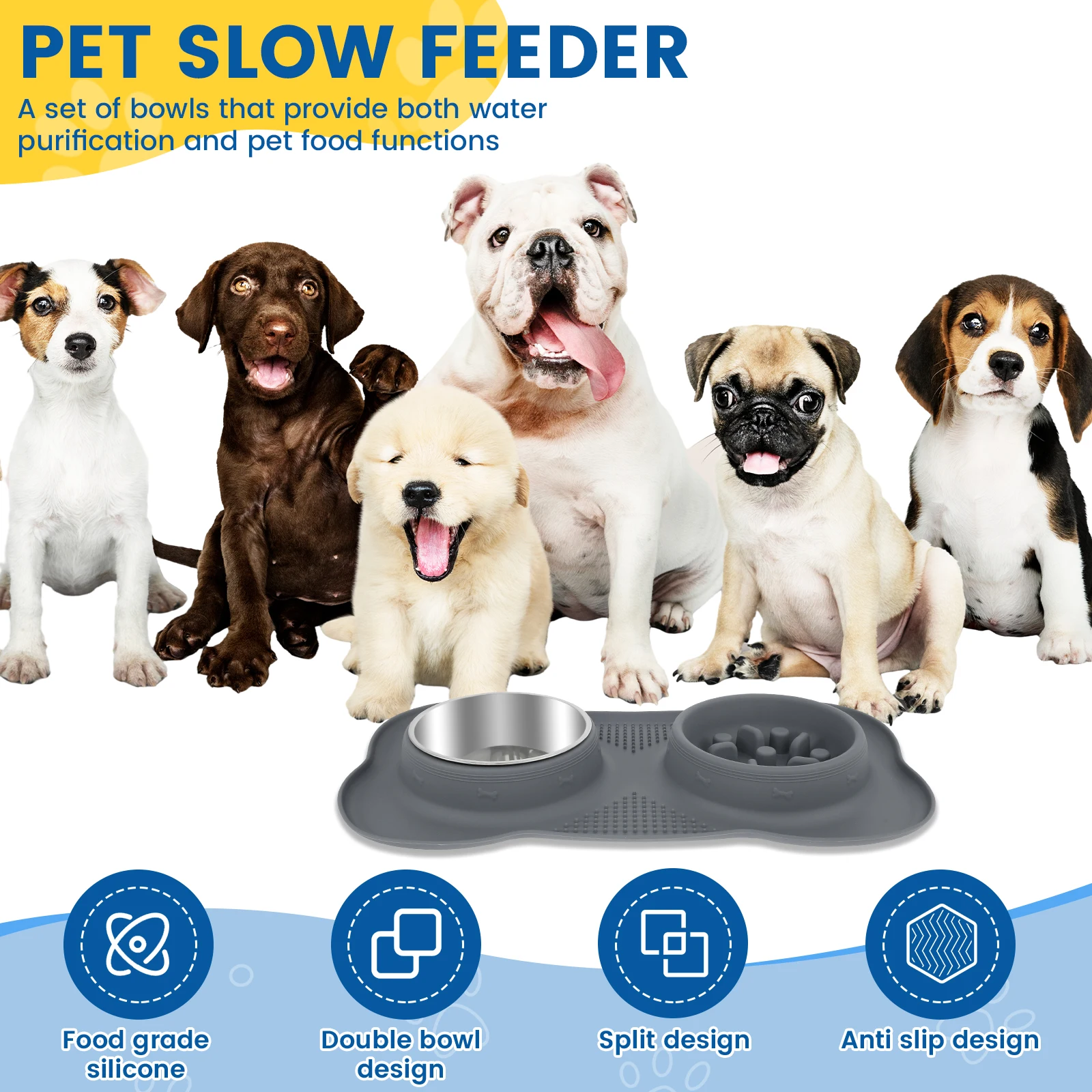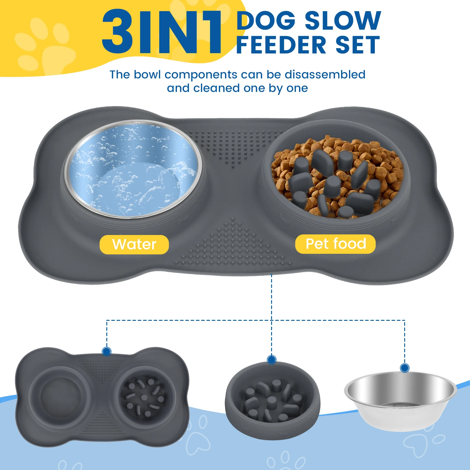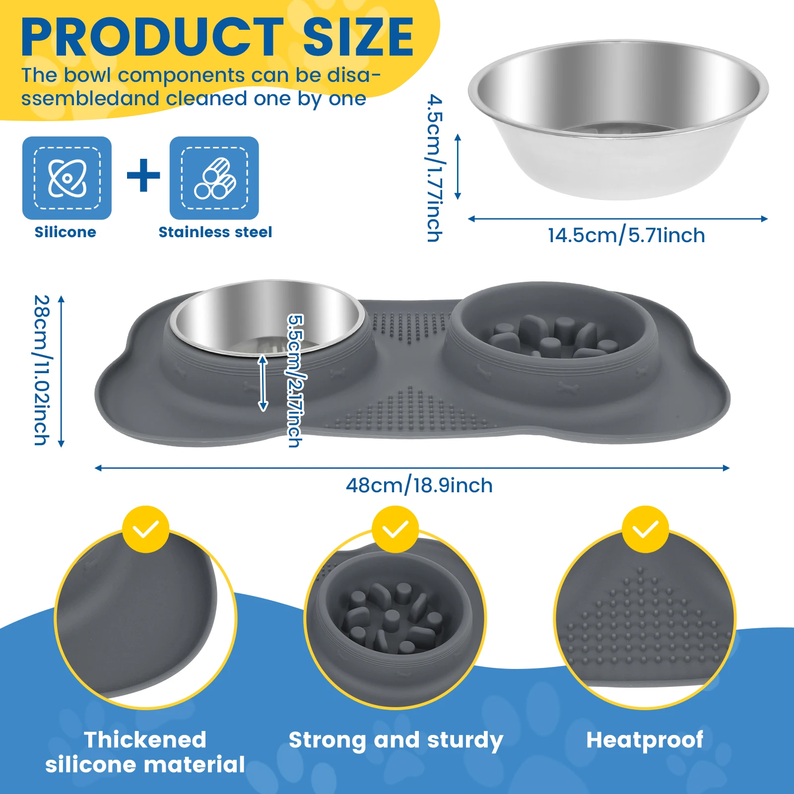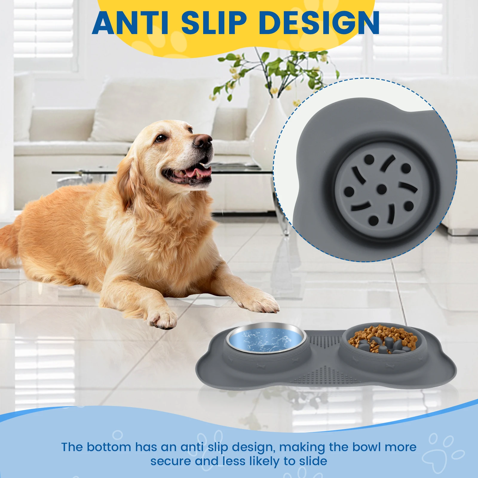 Slow Feeder Dog Bowl with Nonslip Silicone Mat Stainless Steel Pet Slow Bowl Ant