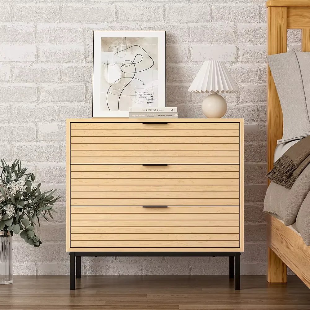Small Rustic Wood Cabinet with Three Drawers File Cabinet for Home Office
