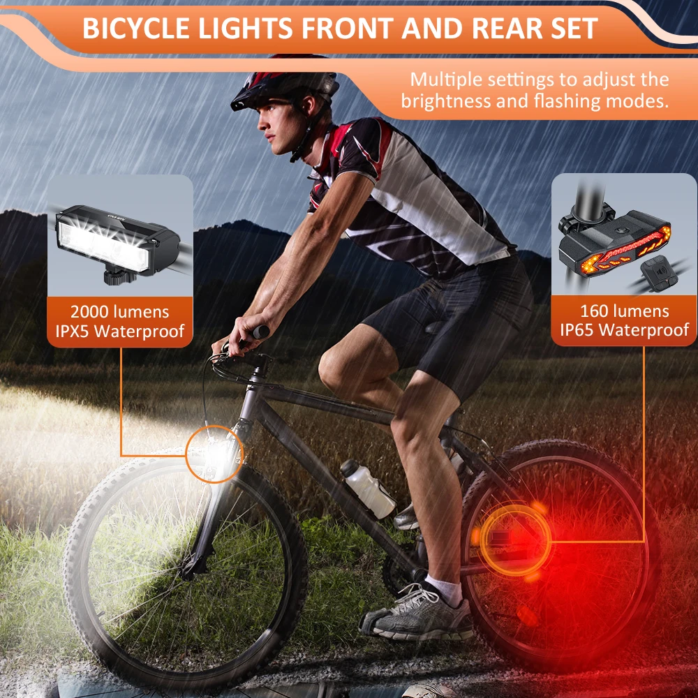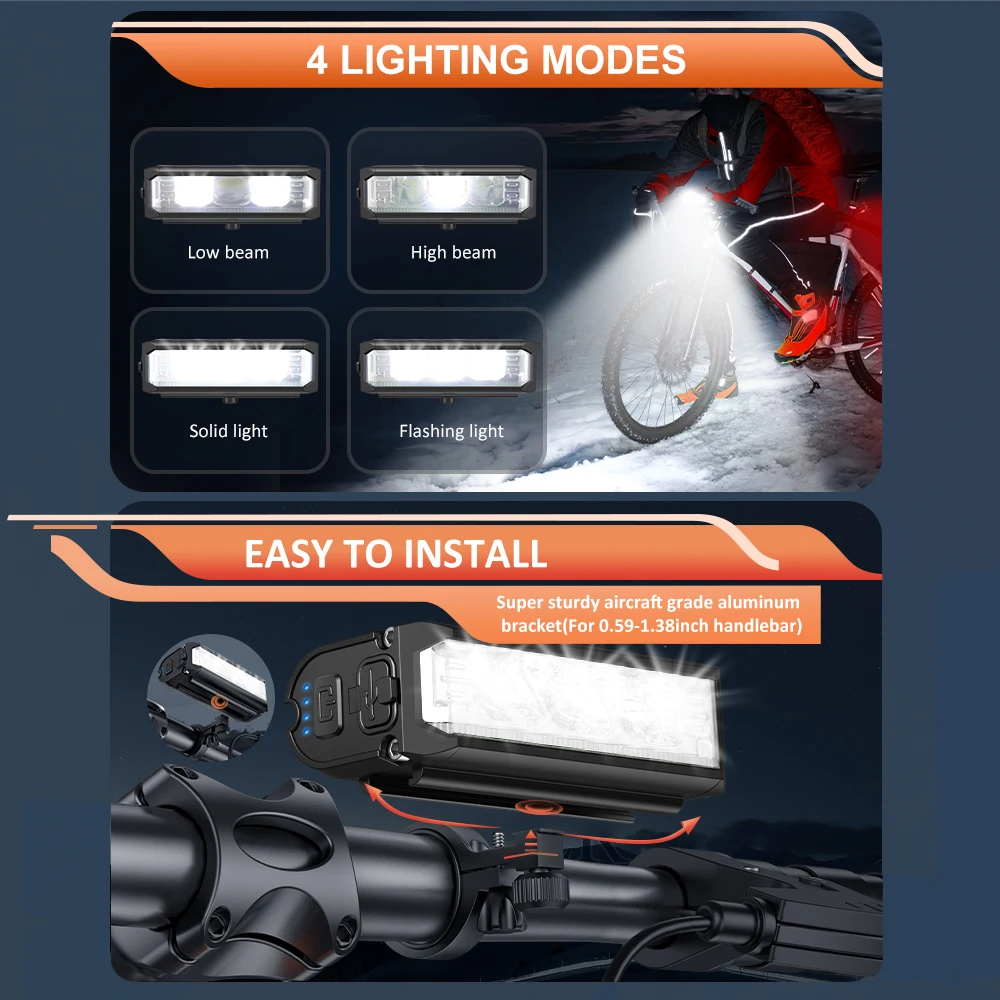 Bicycle light with built-in battery, USB C recharging,1500 mAh large battery capacity, can be used for a long time