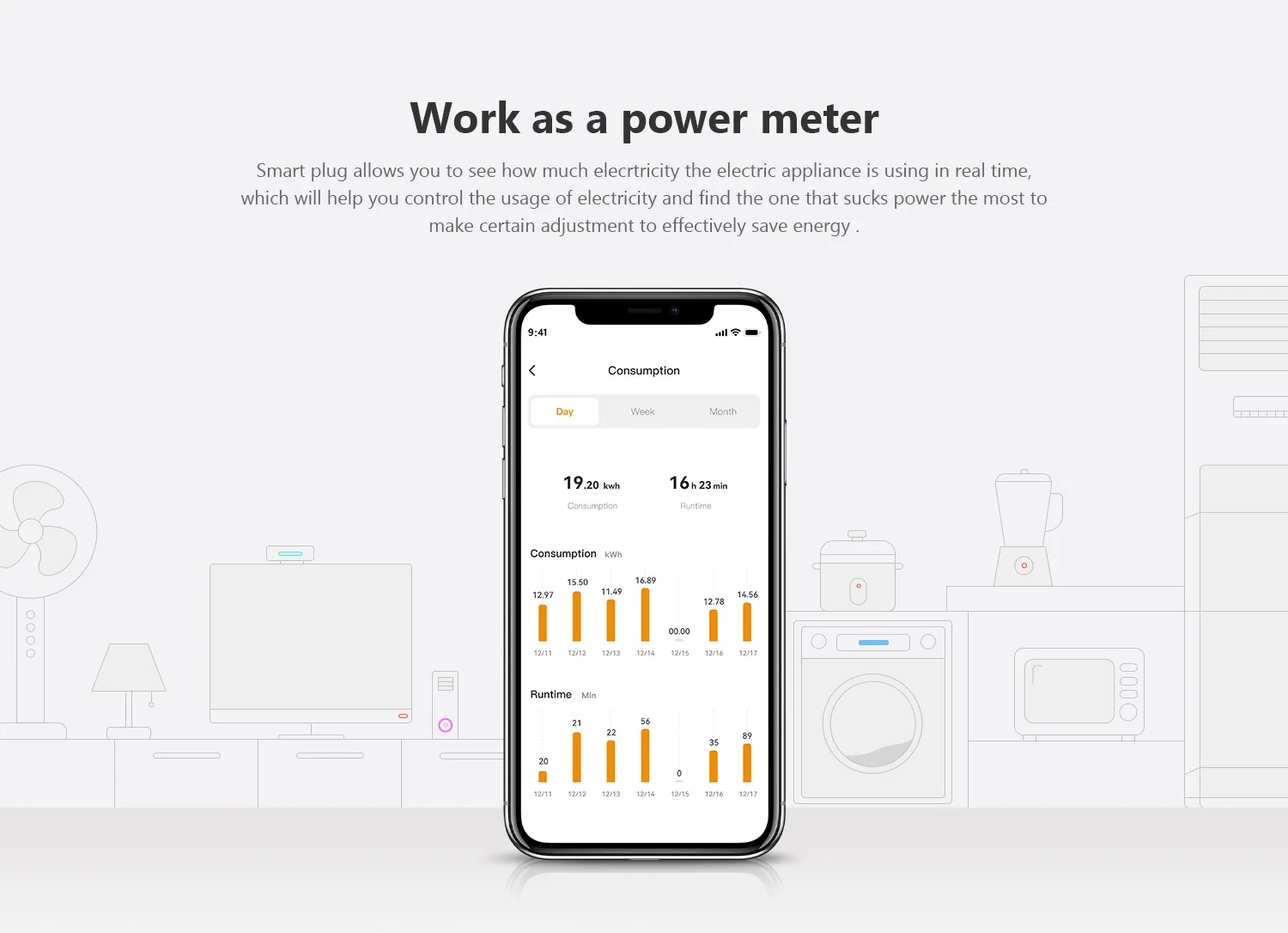Smart plug allows you to see how much electricity the electric appliance is using in real time, which will help you control the usage of electricity and find the one that sucks power the most to make certain adjustment to effectively save energy.