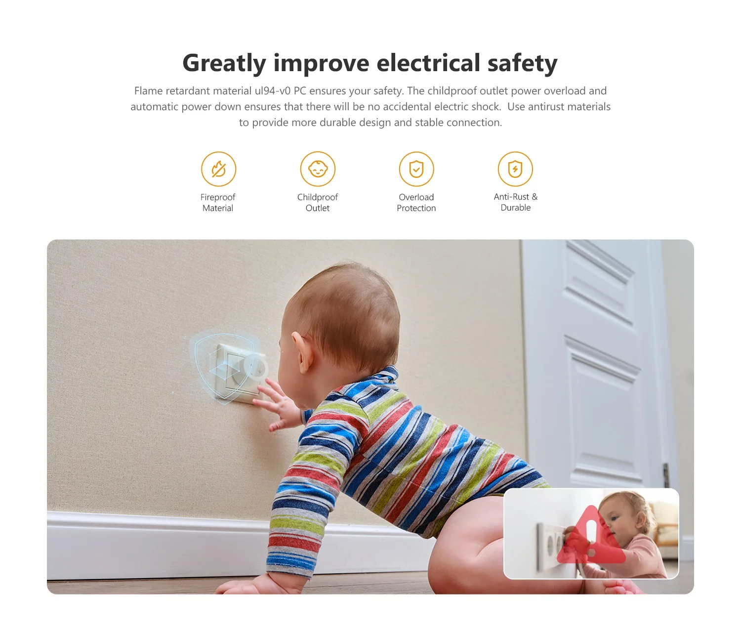 Flame retardant material ul94-v0 PC ensures your safety. The childproof outlet power overload and automatic power down ensures that there will be no accidental electric shock. Use antirust materials to provide more durable de esign and stable connection.