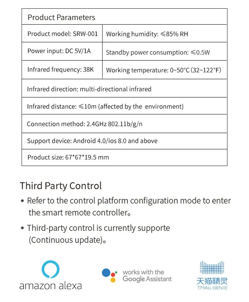 - This IR Smart just can support Alexa &Google Home control the Air-con and TV which build in the IR code in it.