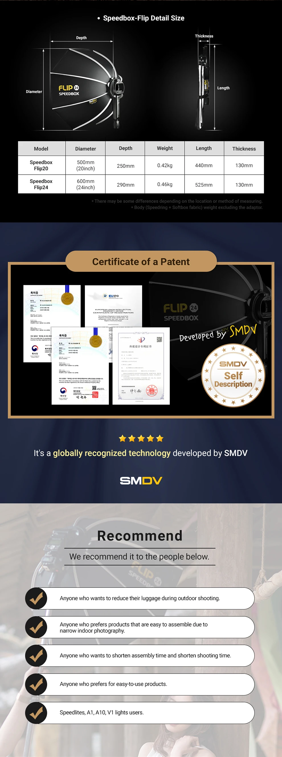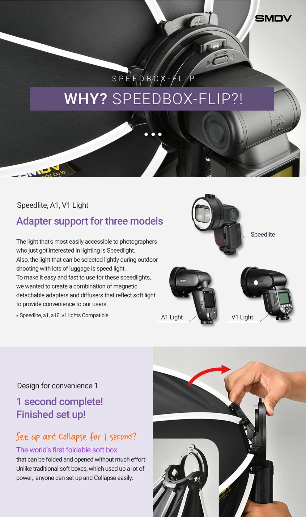 SMDV Flip 20 24 28 Quickly Release Parabolic Out Door Softbox for A1 Godox V1 AD