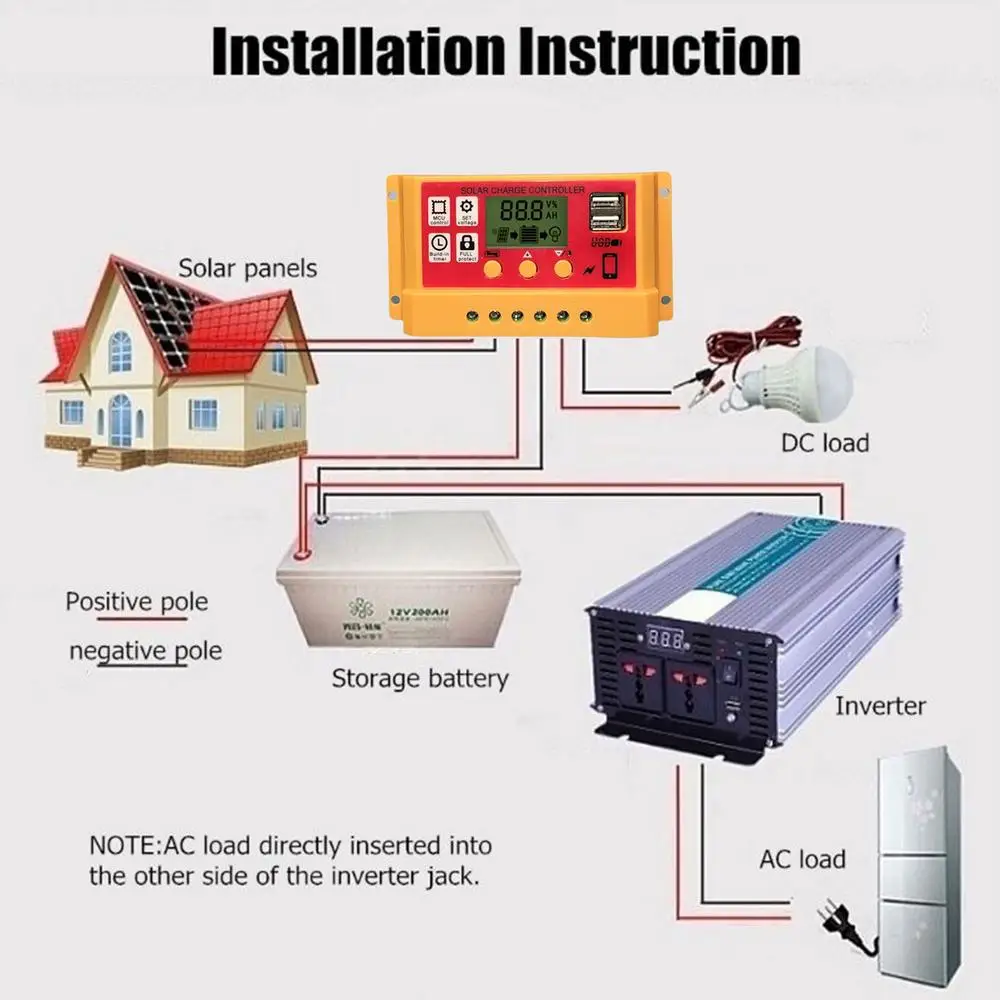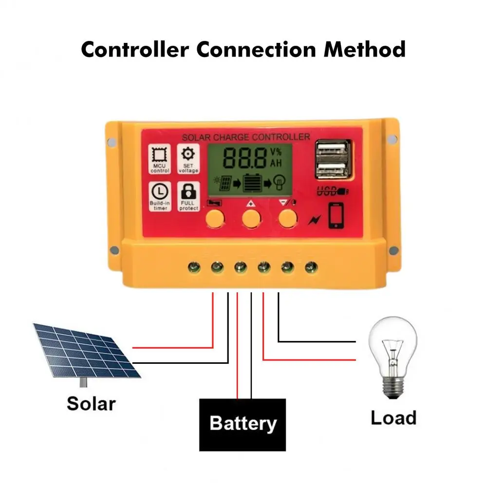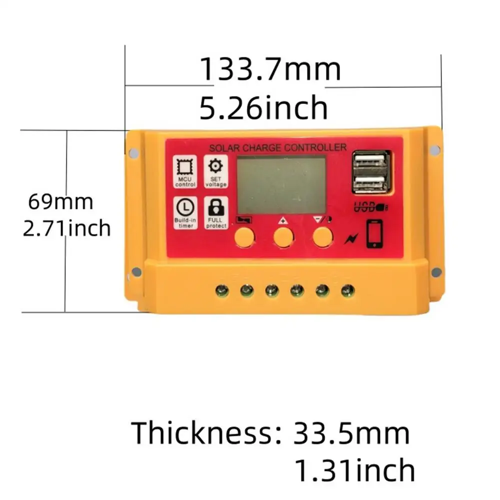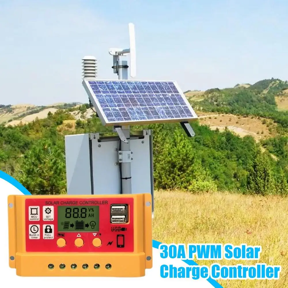 Solar Battery Controller 12V/24V Regulator with Adjustable LCD Double USB Port P