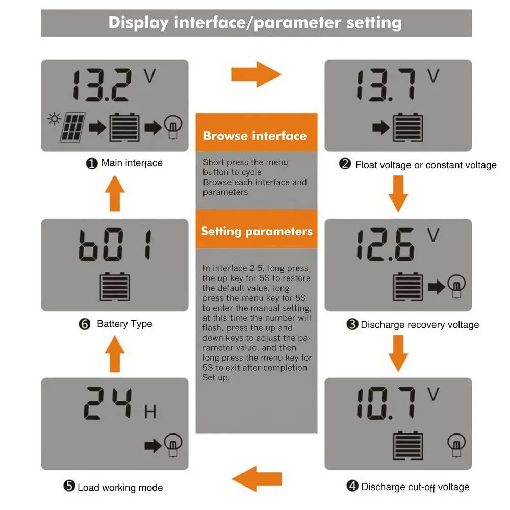 4.Easy to Install: Ensure precise voltage judgment without interference from long wires by positioning the controller close to the battery, conveniently view data, and effortlessly adjust modes and parameters for optimal performance