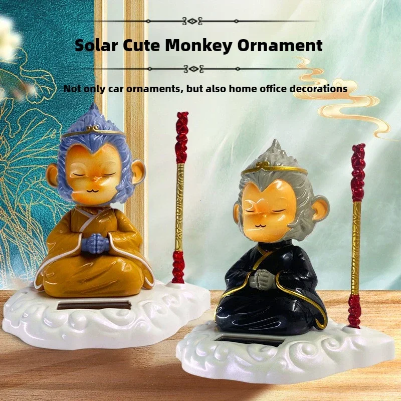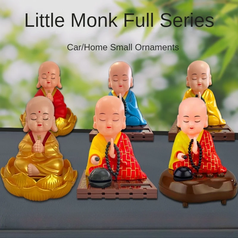 Solar Little Monk Creative Car Ornaments Dashboard Decoration Chinese Style Budd