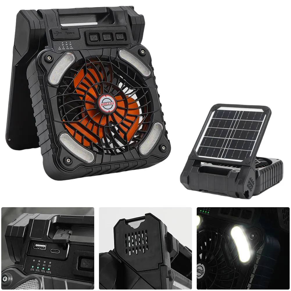 Solar Outdoor Camping Fan with LED Light 5200Mah Solar Portable Electric Fan Sol
