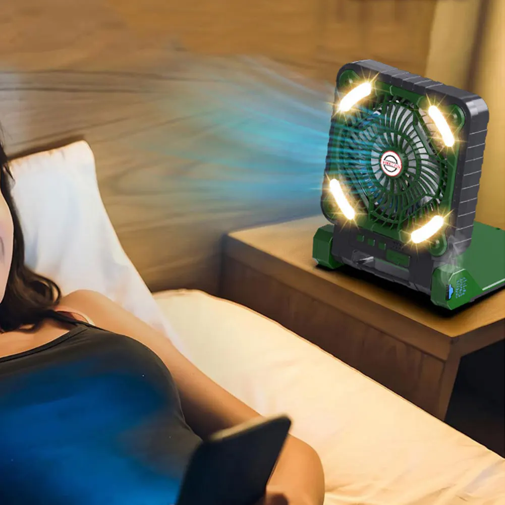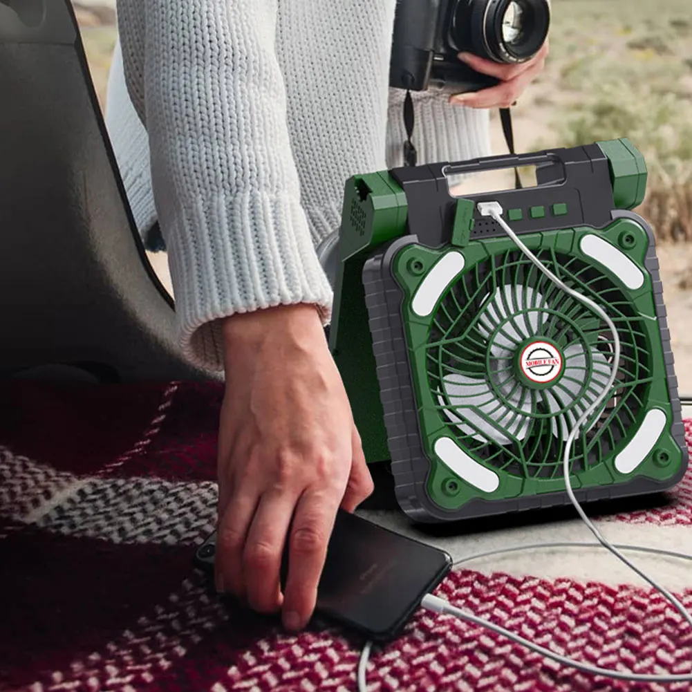 3.Long-Lasting Battery Life: Powered by a 5200mAh battery with low loss rate, the solar outdoor tent fan operates for approximately 6 to 20 hours.