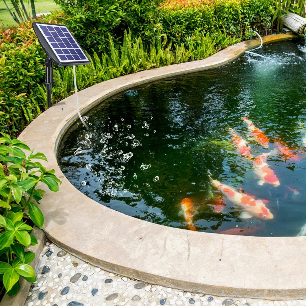 Solar Aquarium Oxygen Aerator 3W Fish Tank Air Pump with Pipe Fishing Oxygenation Device for Pond Stock Tank Fishing Hydroponics