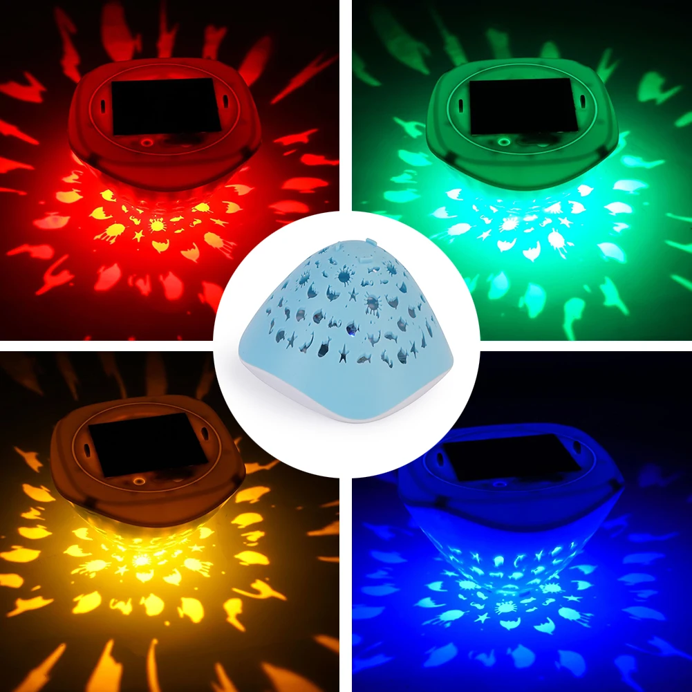 Solar Powered LED Swimming Pool Floating Lights 4 Colors 6 Modes Underwater Pool Light IP68 Waterproof Fish Pattern Fountain Projector Light for Hot Bathtub Pond Decoration