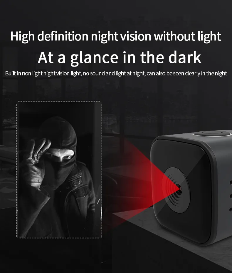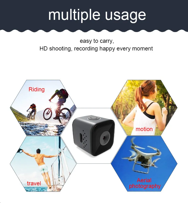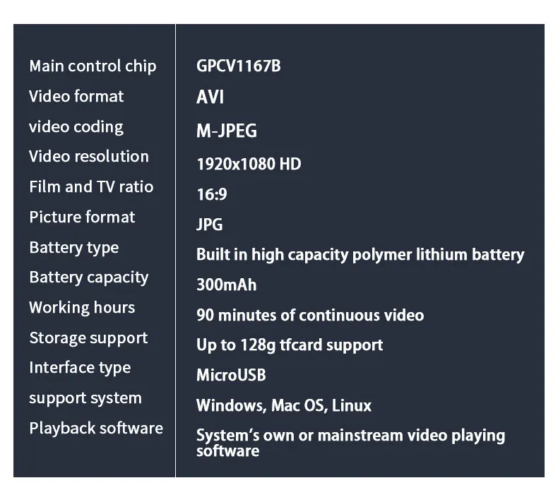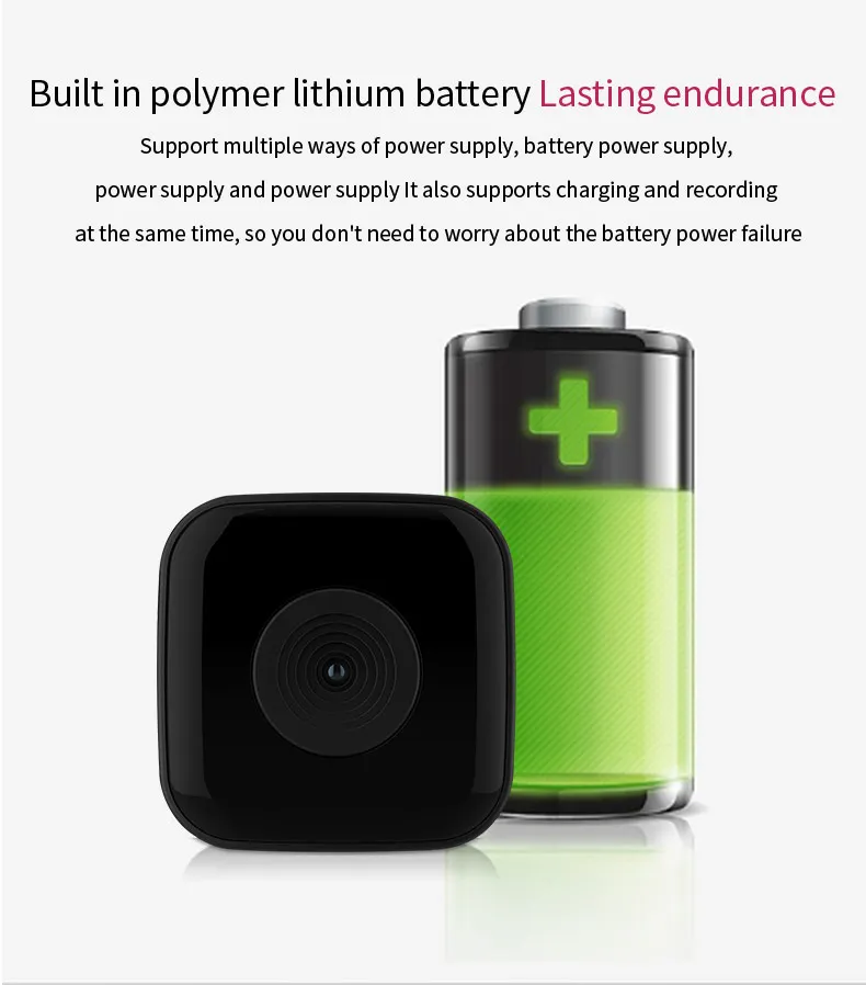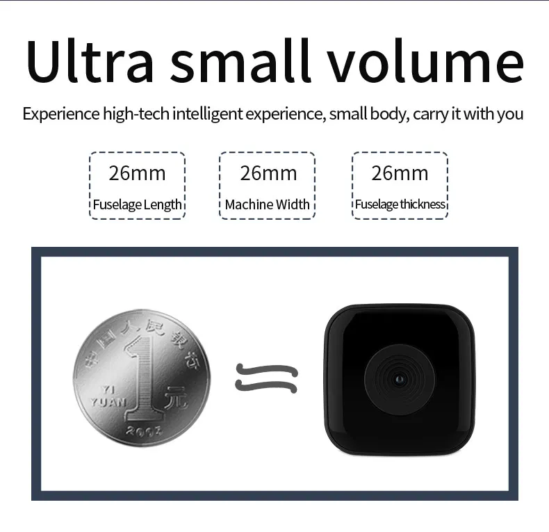 The video camera is only 3.26*3.78*3.3cm, which is mastered by one hand and weighs only 41.2g It can be picked up by one finger and put on the head effortlessly.