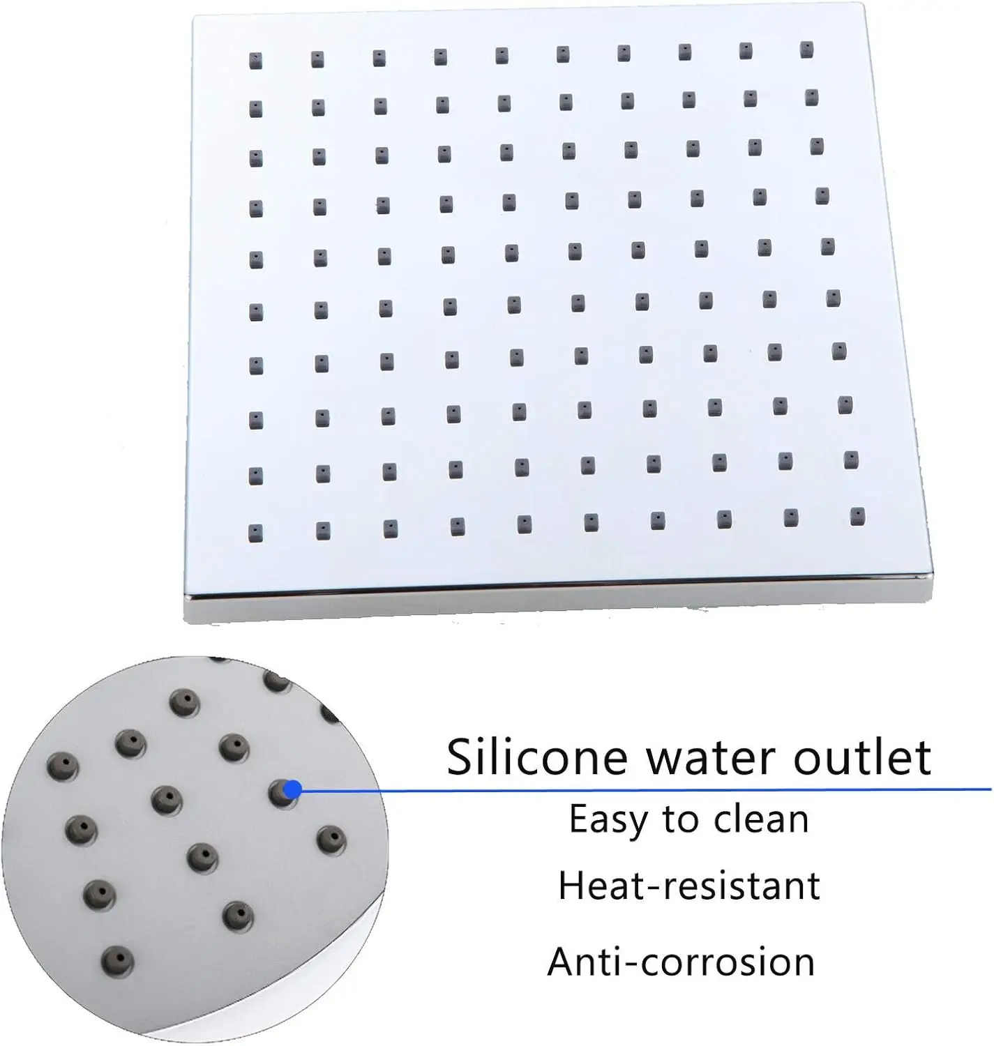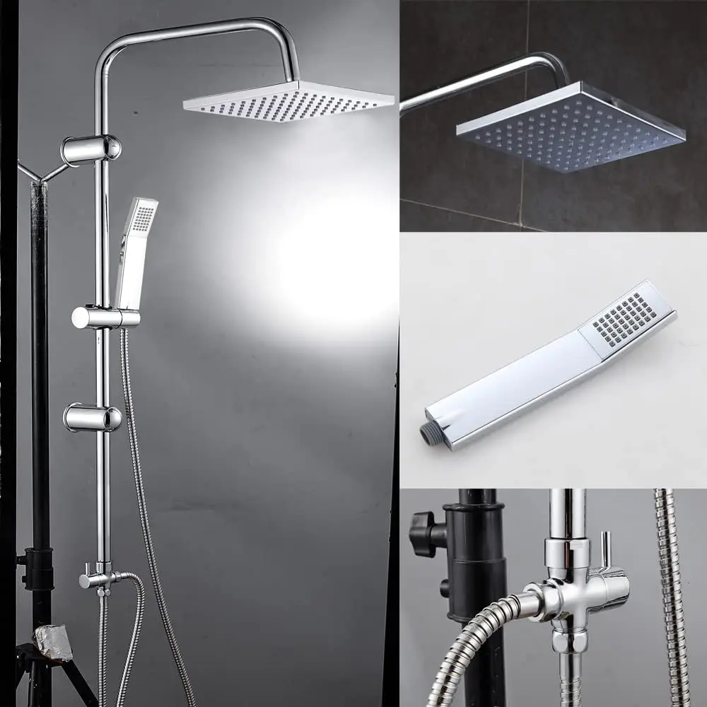 Square Chrome Overhead Rain Shower Kit Dual Rigid Riser Rainfall Head and Hand H