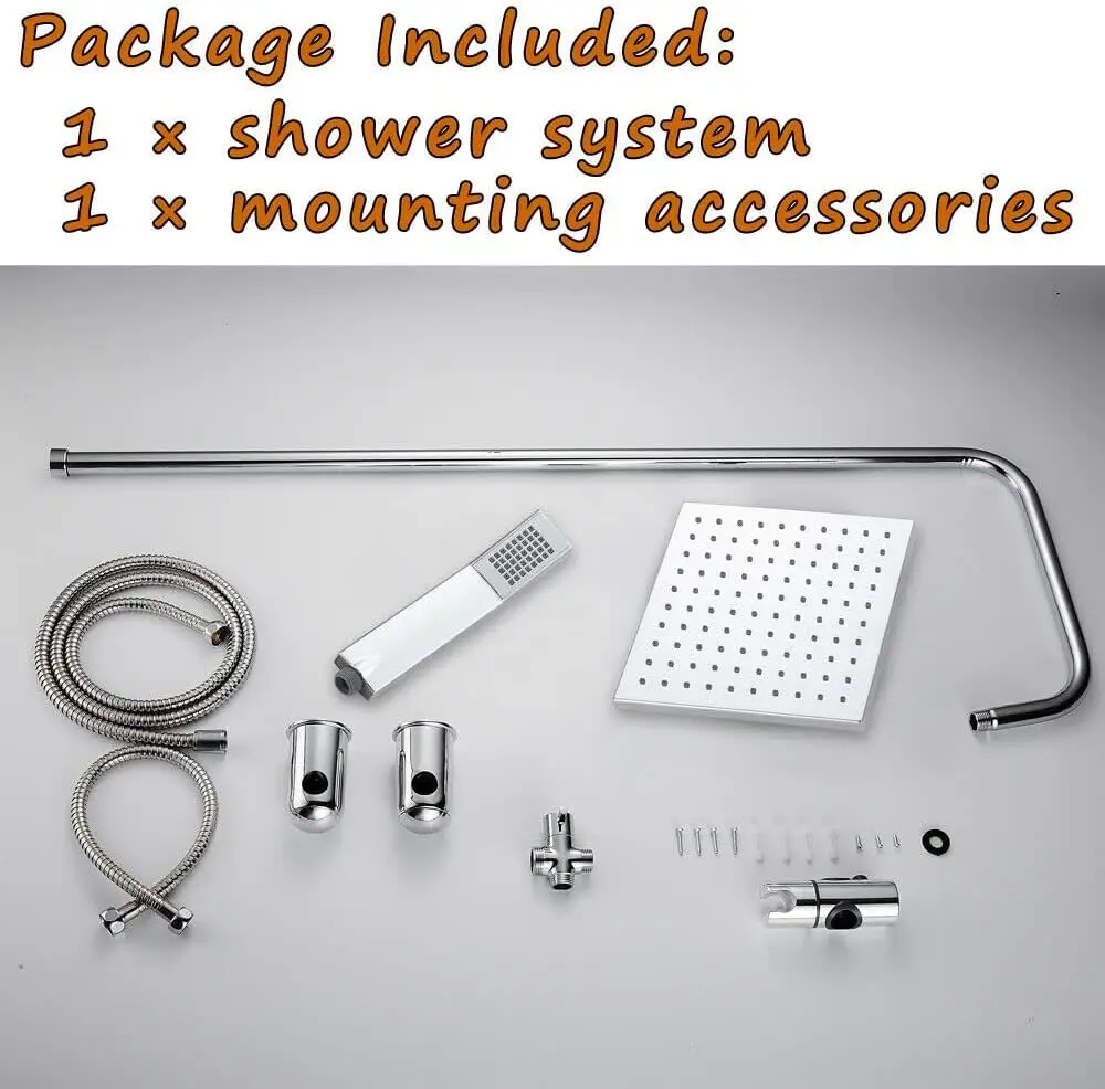 Standard Fitting: Shower set complete, include overhead shower, hand shower, shower rail kit and, anti-kink shower hose, a manual easy to fit and very easy to operate. Note:Rinse the pipe sediment before installing the shower to avoid blockage or odor. Install the connection port to the left of the hot water and connect the cold water to the right.
