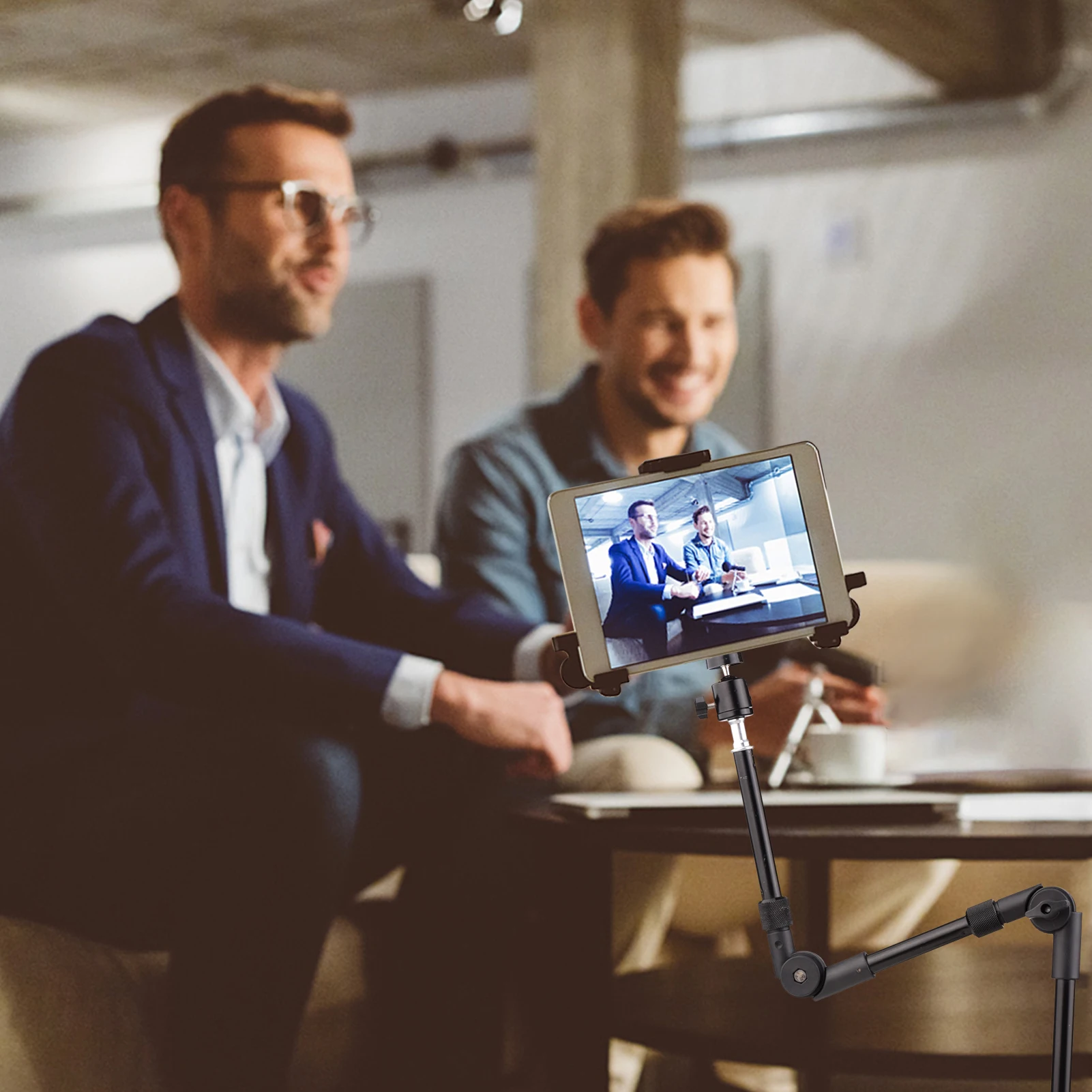 Flexible Height & Angle AdjustingEach bracket rod can be flexibly adjusted 360 rotation and 180 bending to any angle and position you need. And the 360 rotatable ballhead adapter make it easier to adjust the device angle and achieve vertical/horizontal usage quickly.