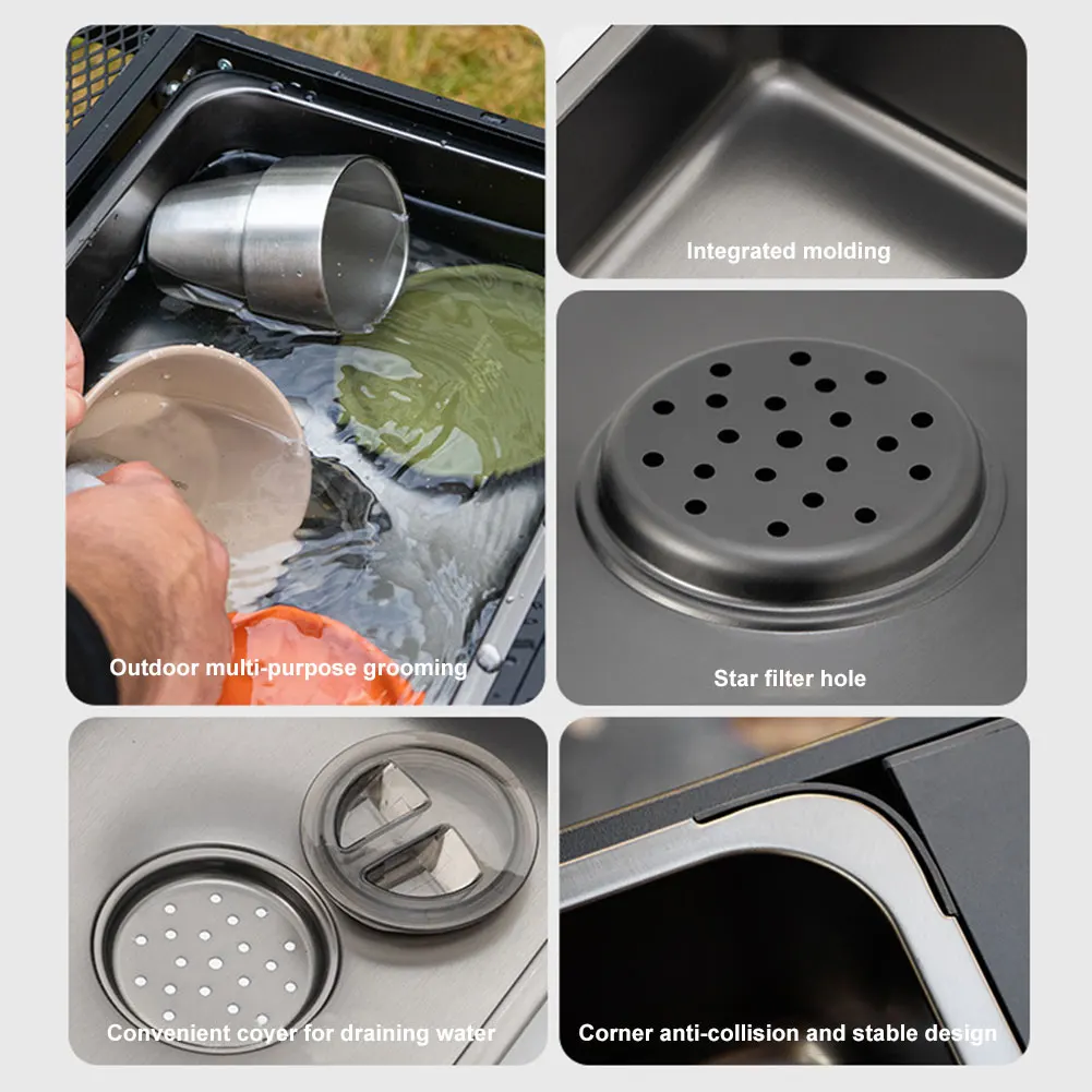4.Efficient Drainage System: With densely packed drainage holes, the outdoor portable sink provides high-efficiency water flow and prevents clogging, ensuring smooth operation and convenience during outdoor activities.