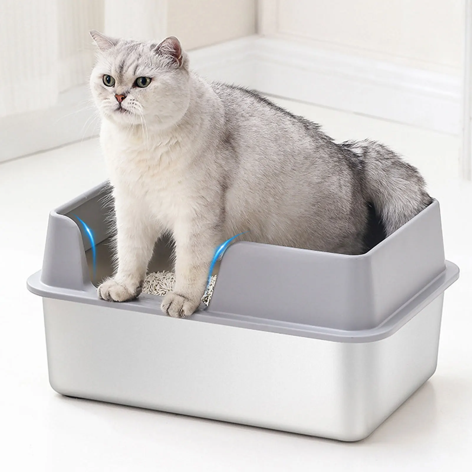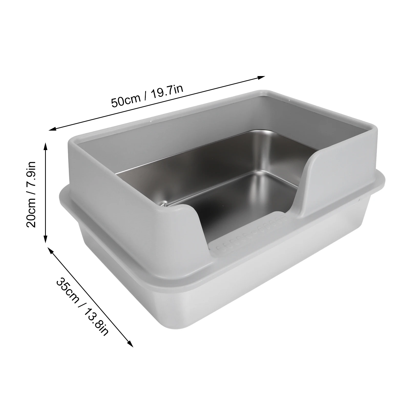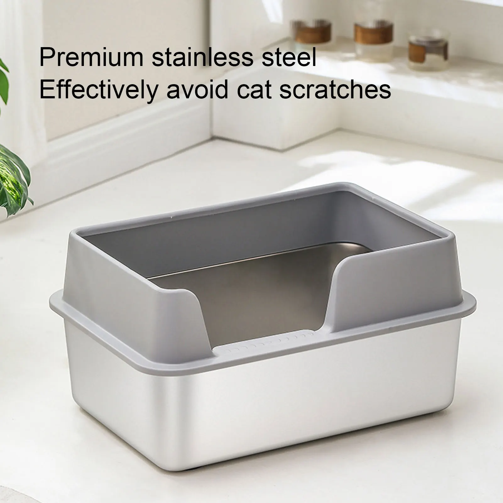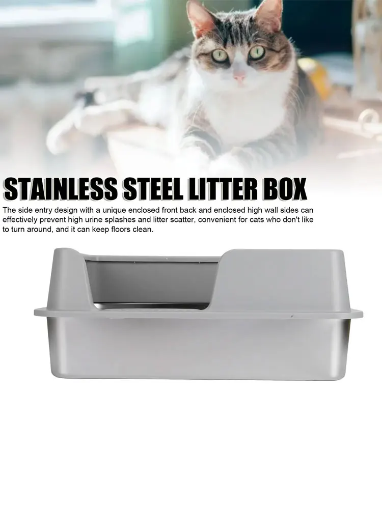 Stainless Steel Litter Box High Sides anti Splashing Easy to Clean Enclosed Cat