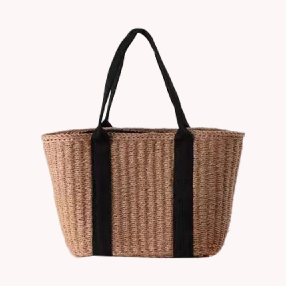 Straw Beach Bag Large Capacity Women Top-Handle Bag Drawstring Woven Lightweight