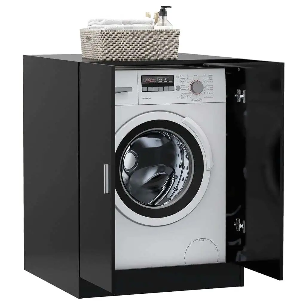 Stylish Black Washing Machine Cabinet - Space-Saving Storage Solution for Laundr