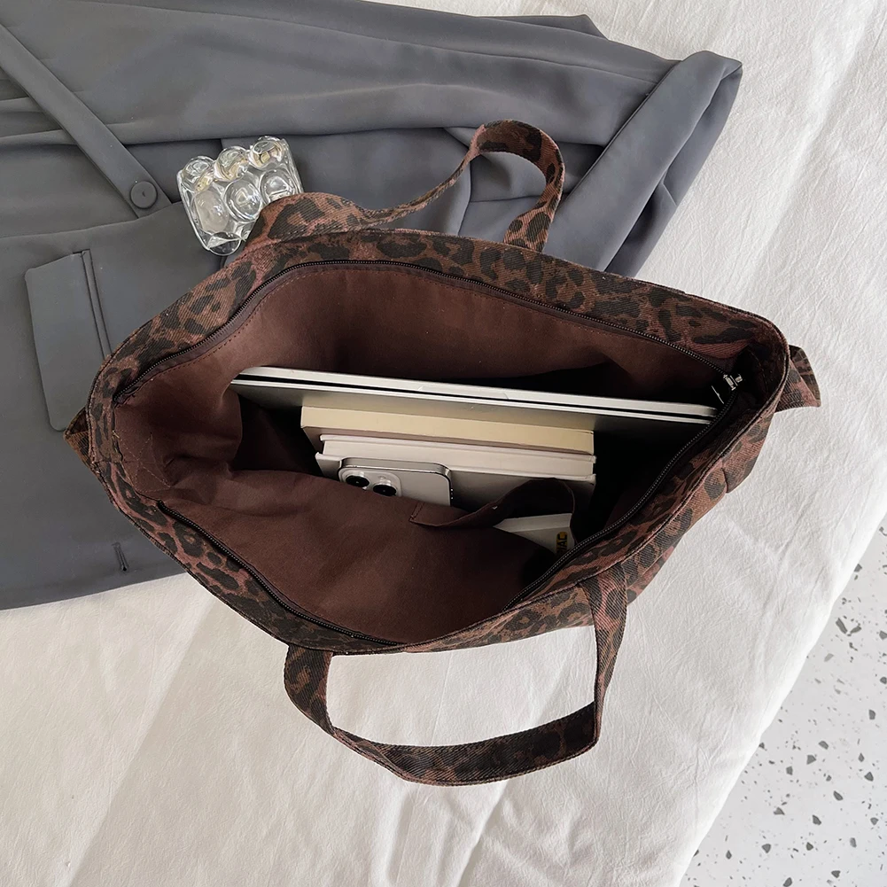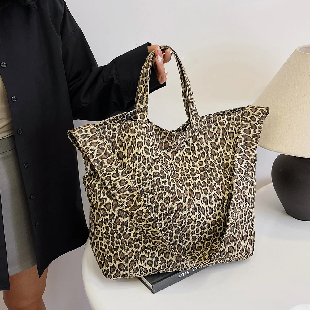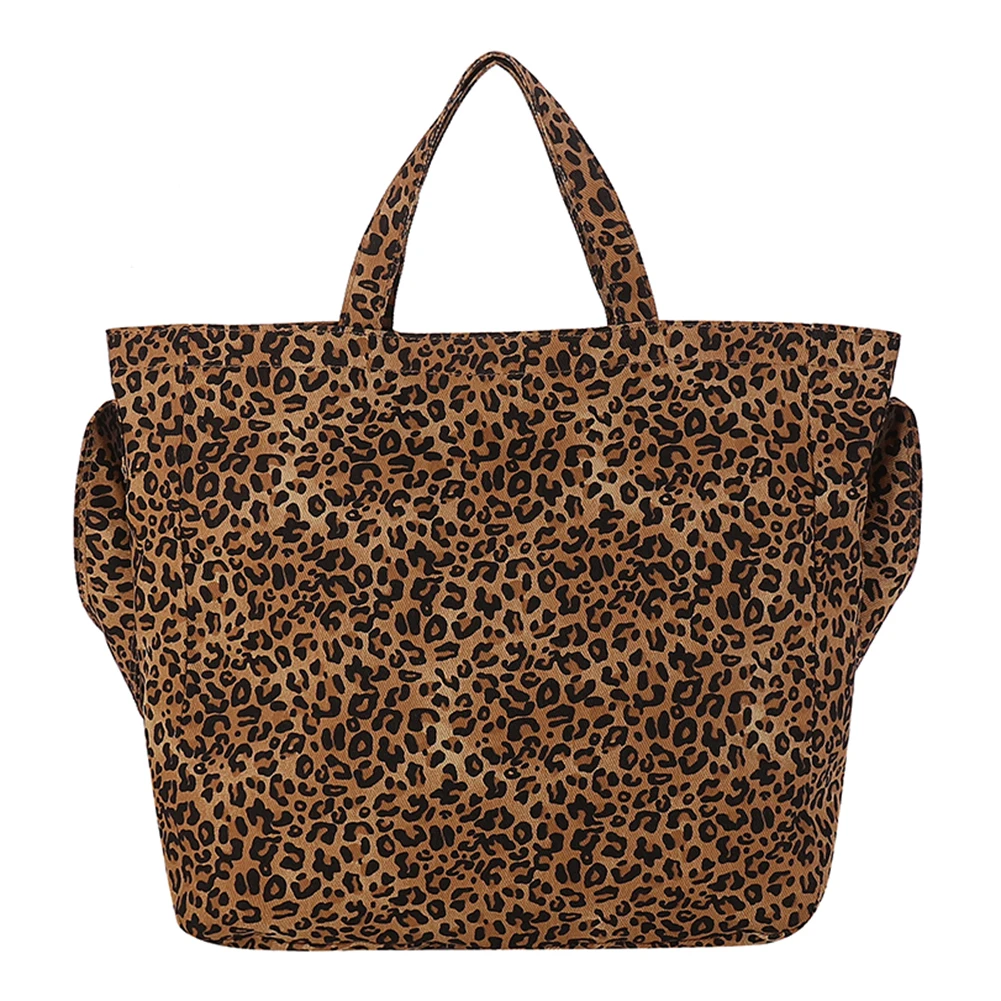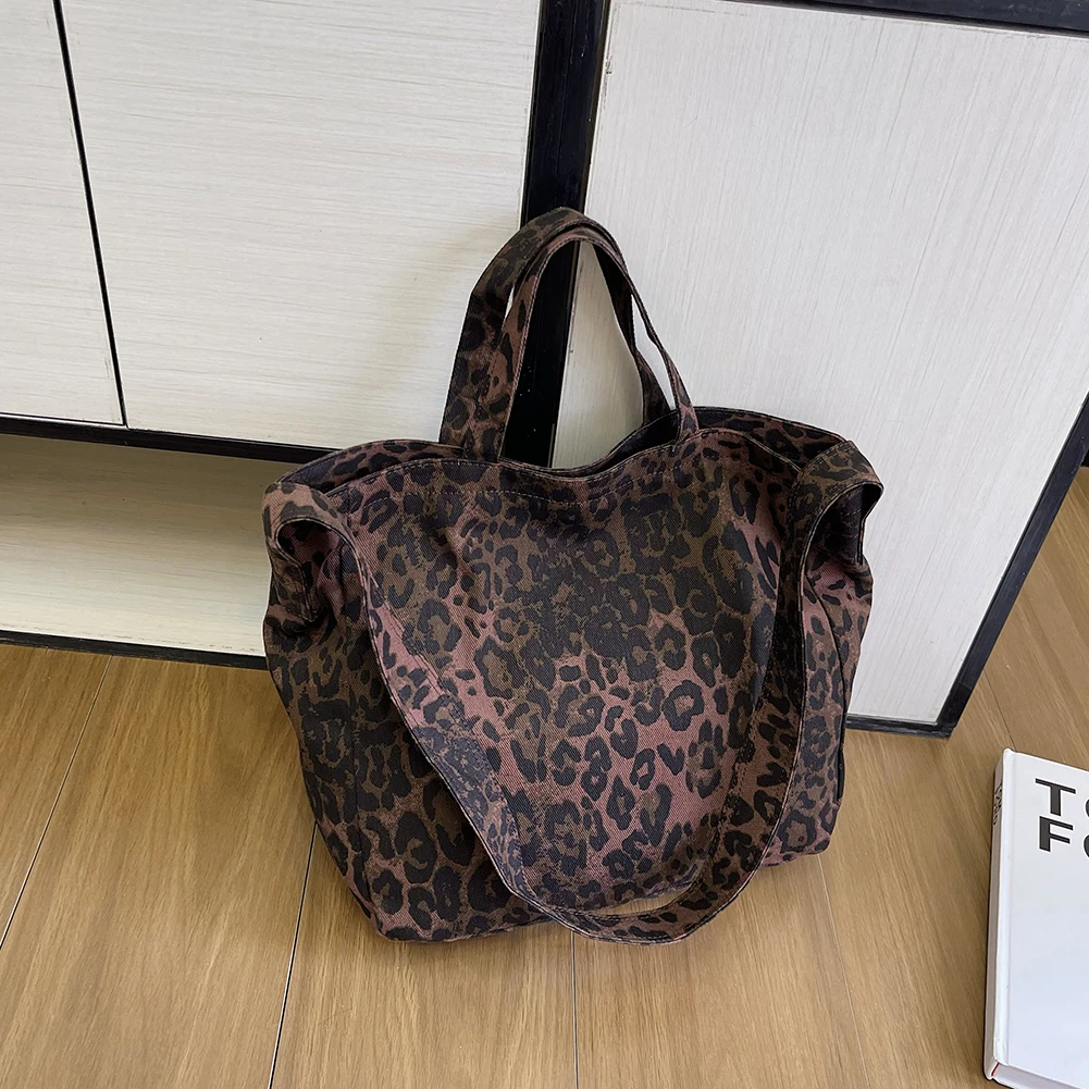 Stylish Leopard Print Shoulder Bag for Women Canvas Crossbody Tote Handbag with
