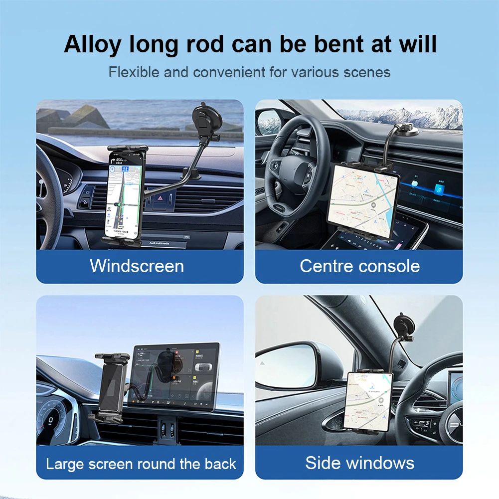1. Universal Compatibility: This windshield car tablet mount is designed to be within easy reach without obstructing your view, ensuring safe and convenient access for all your devices.