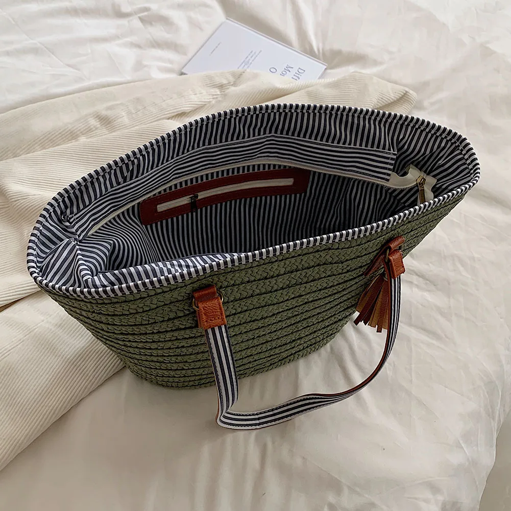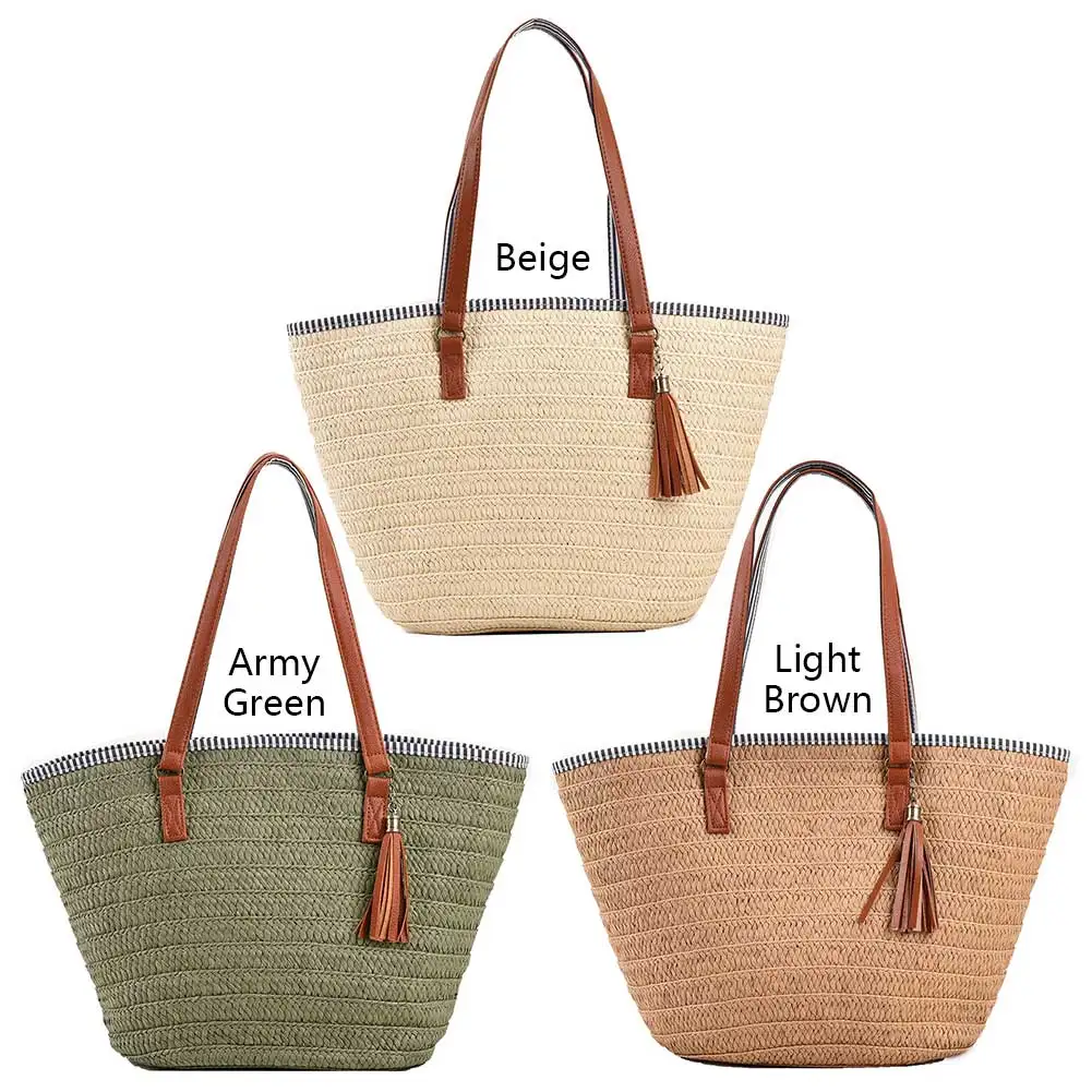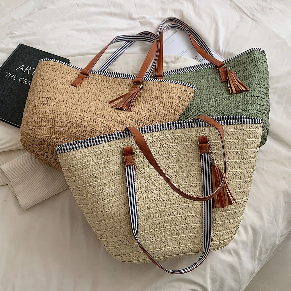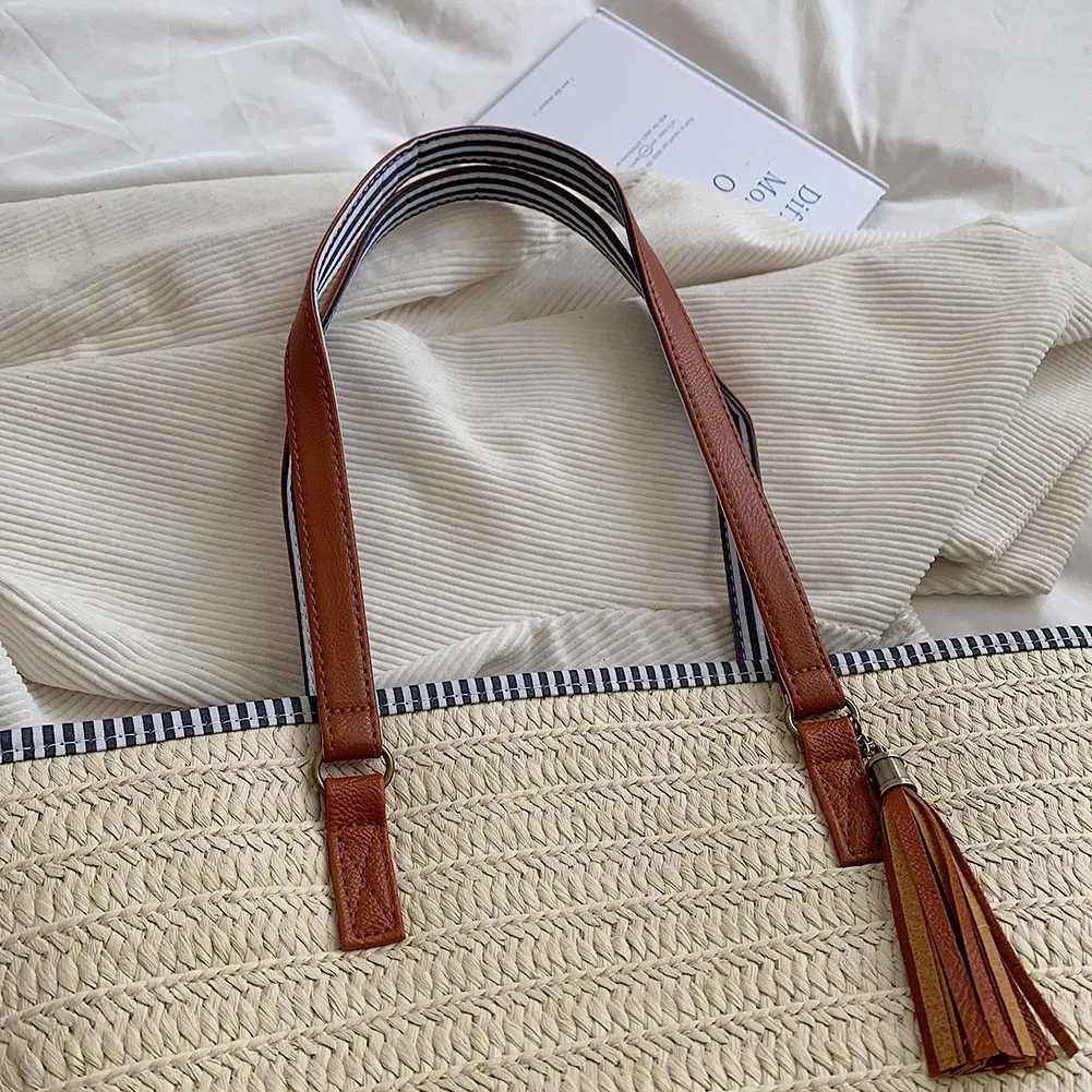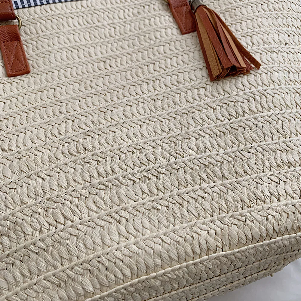 Summer Top-Handle Bag Paper Rope Tassels Beach Vacation Bags Handmade Casual Fas