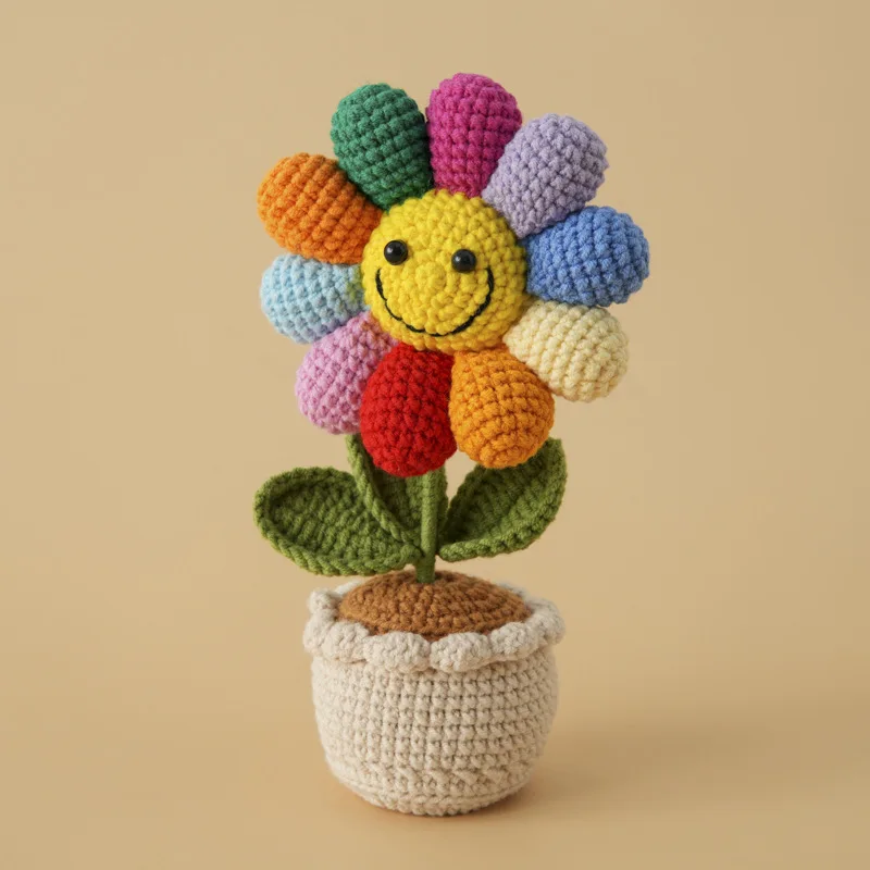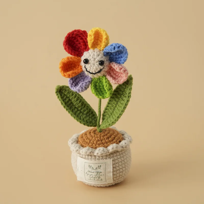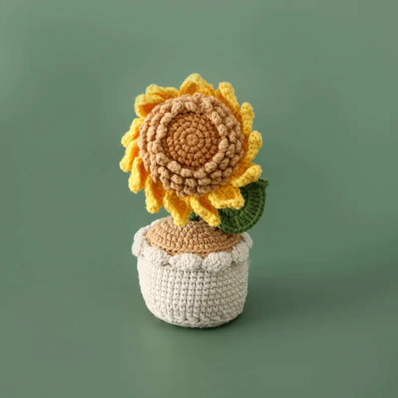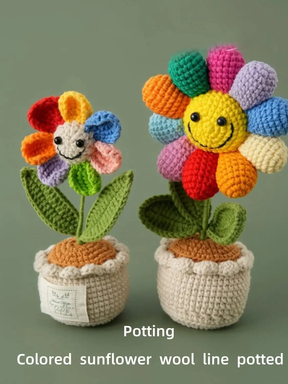 Sunflowers Crochet Colourful Kintted Flower Potted Artificial Flower Sunflower T