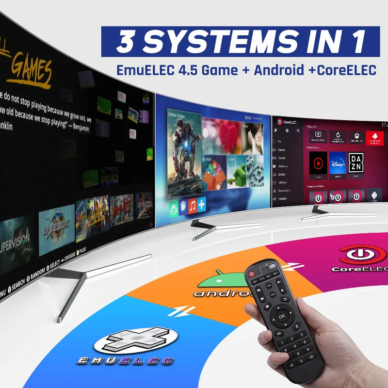 This TV box game console Android 9.0 system, make applications start faster, and run more smoothly than before. Support 4K watching TV/movies. download APP, and search for information online.