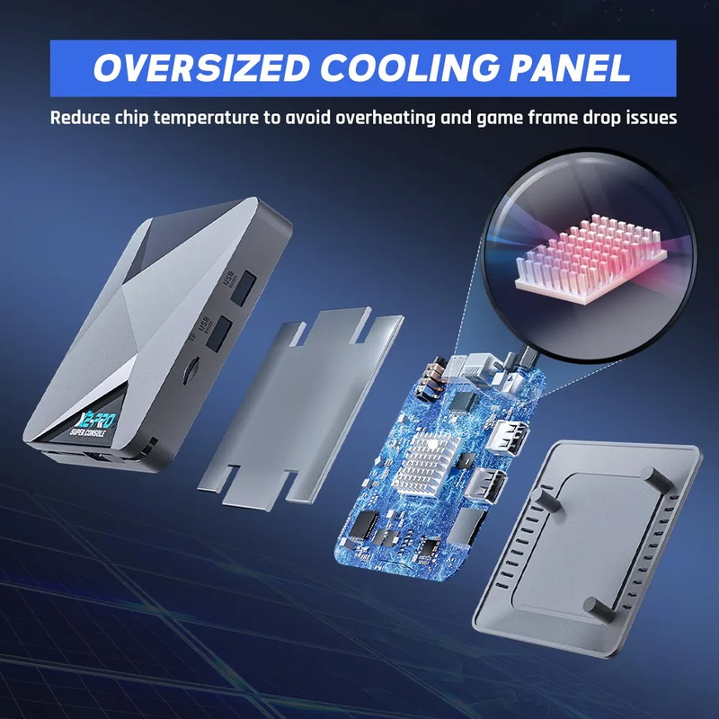 The super console X2 Pro built-in an oversize cooling fin, effectively reducing CPU stability, and making running games and watching videos smoother.