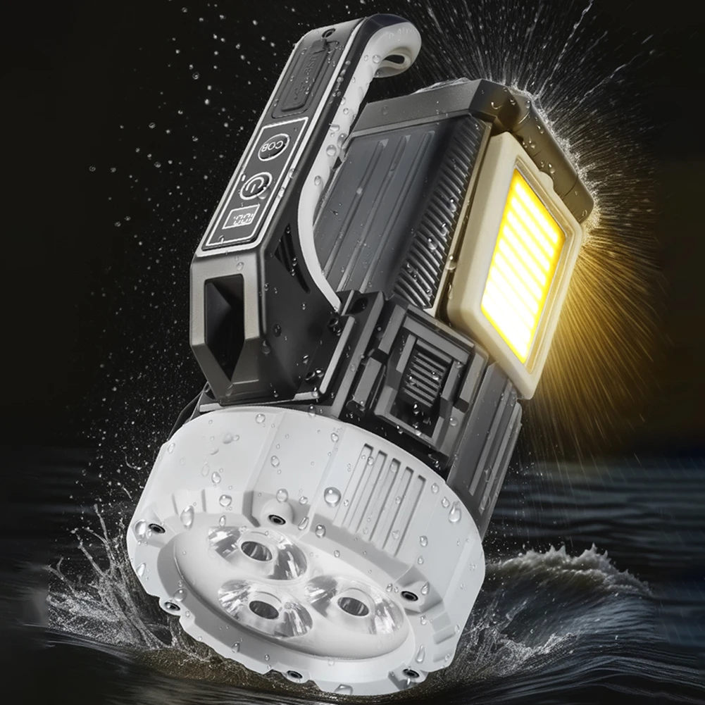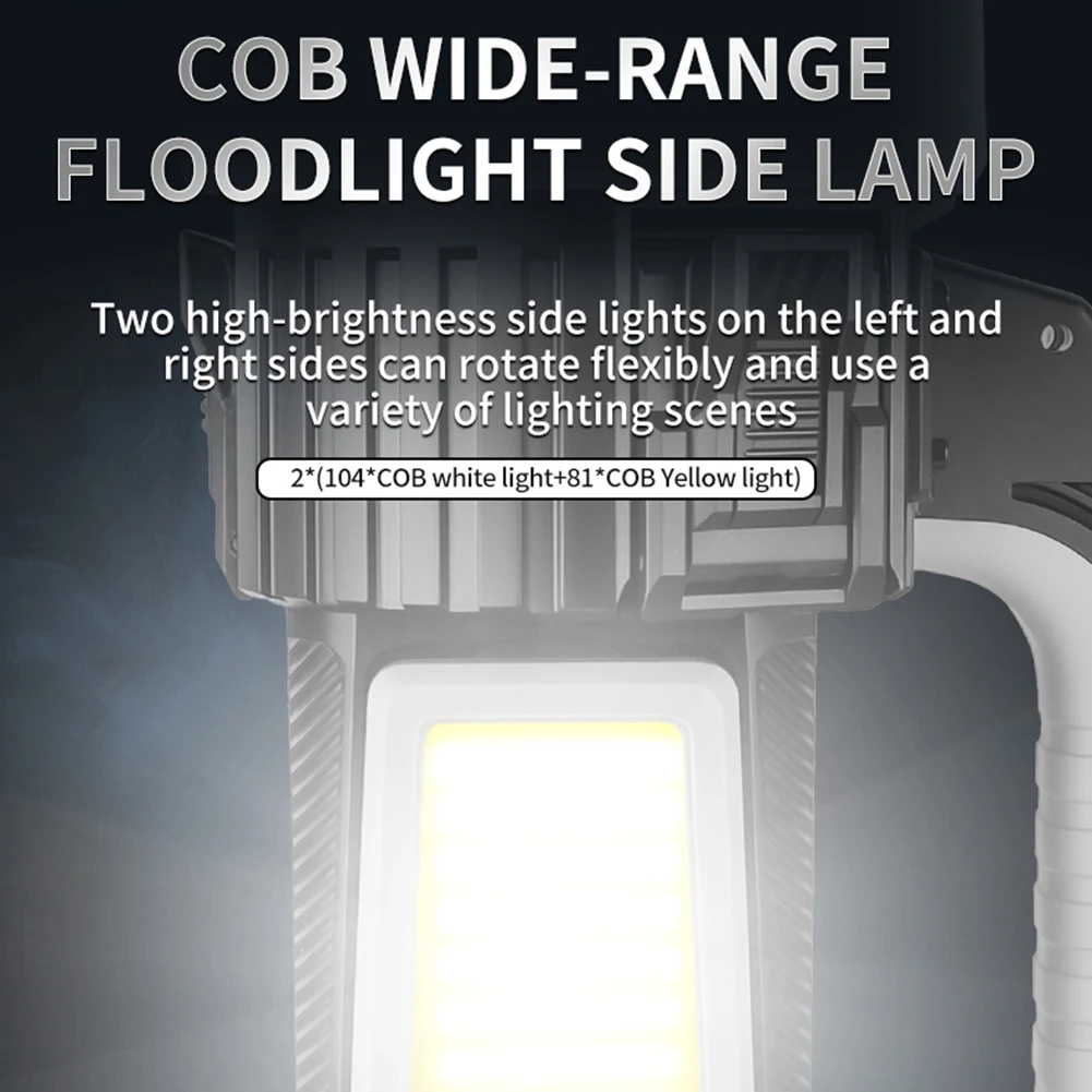 5.Wide Beam Coverage: Equipped with large double-leaf COB floodlights, this portable emergency light provides extensive illumination and 360-degree rotation, perfect for work, camping, and more.
