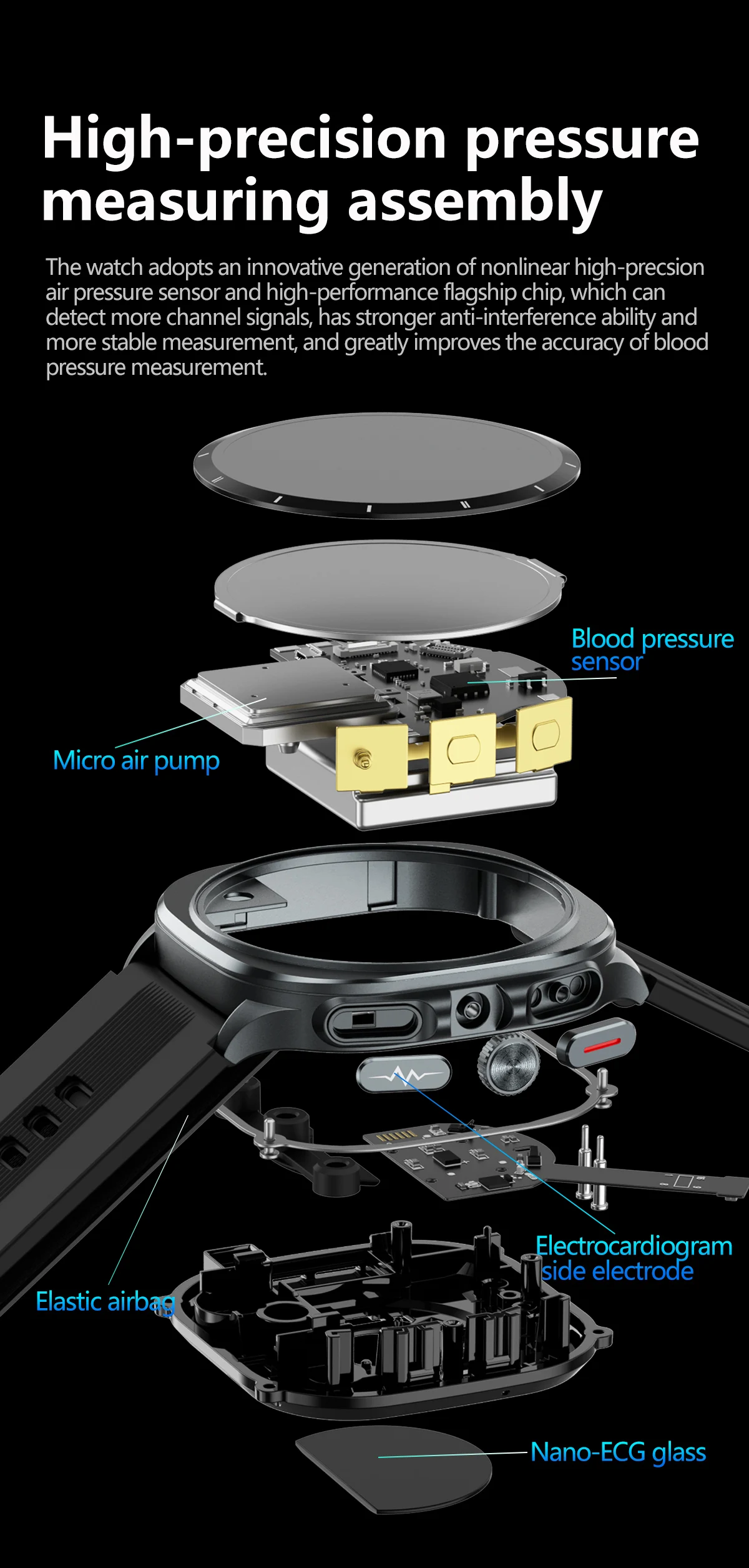 TK65 ECG Smart Watch Amoled Air Pump Sac True Accurate Blood Pressure Health Mon