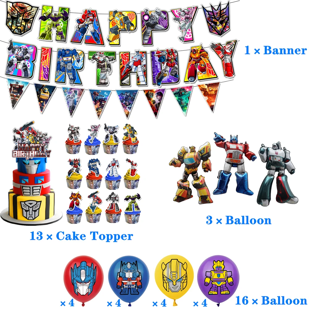 Transformers Birthday Decoration Cake Topper Boys Transform Banner Yellow Bee Pa