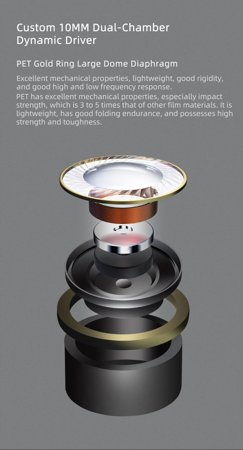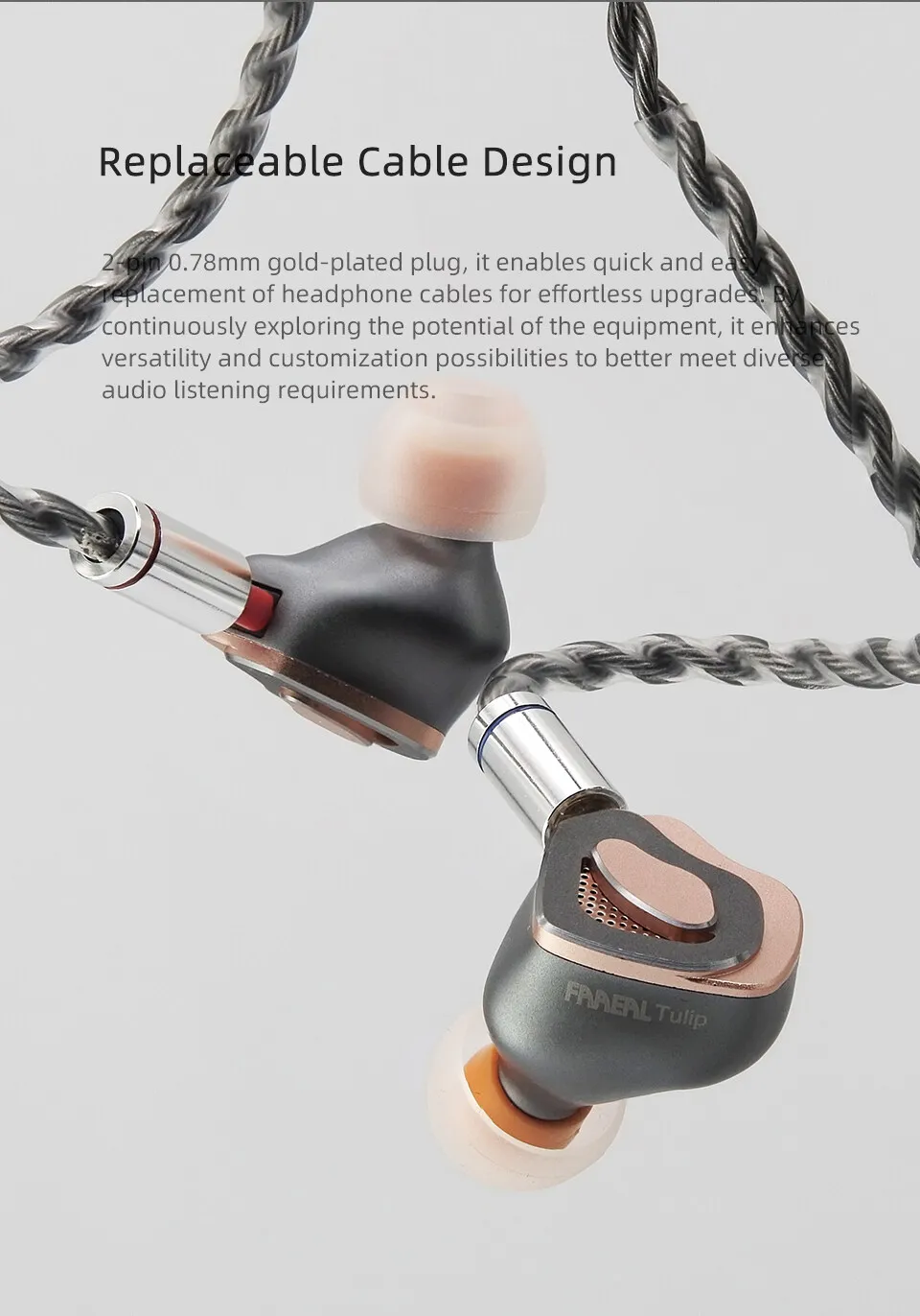 FAAEAL Tulip Earphone 10MM Gold Ring Large Dome Single Dynamic HIFI Headphone 3.5mm/4.4mm Plugs Standard Cable/Hibiscus Cable Pro Version Monitors Earbuds Comfortable To Wear Sports Running Gaming Headsets For Smartphones MP3 MP4 Players Laptops Computers
